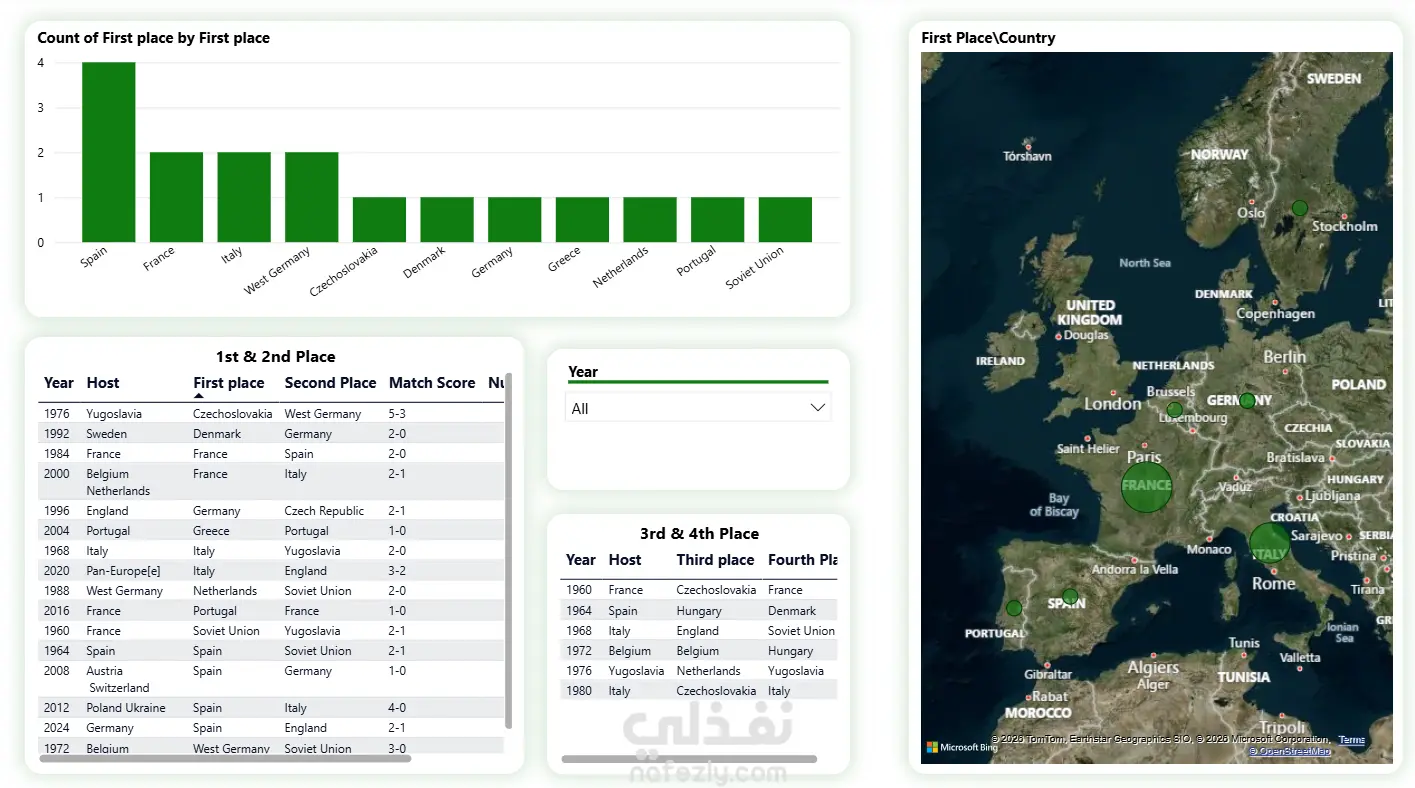 لوحة تحكم تفاعلية لتحليل بيانات بطولة أمم أوروبا باستخدام Power BI