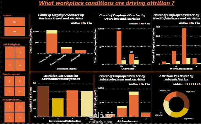 يهدف هذا المشروع إلى تحليل بيانات الموارد البشرية الخاصة بالشركة باستخدام Power BI من أجل فهم وتحديد الأسباب الرئيسية وراء تسرب الموظفين (Employee Attrition). تم استخدام مجموعة بيانات تحتوي على معلومات متنوعة مثل المسمى الوظيفي، سنوات الخبرة، الدخل الشهري، القسم، الحالة الاجتماعية، وسنوات العمل في الشركة.