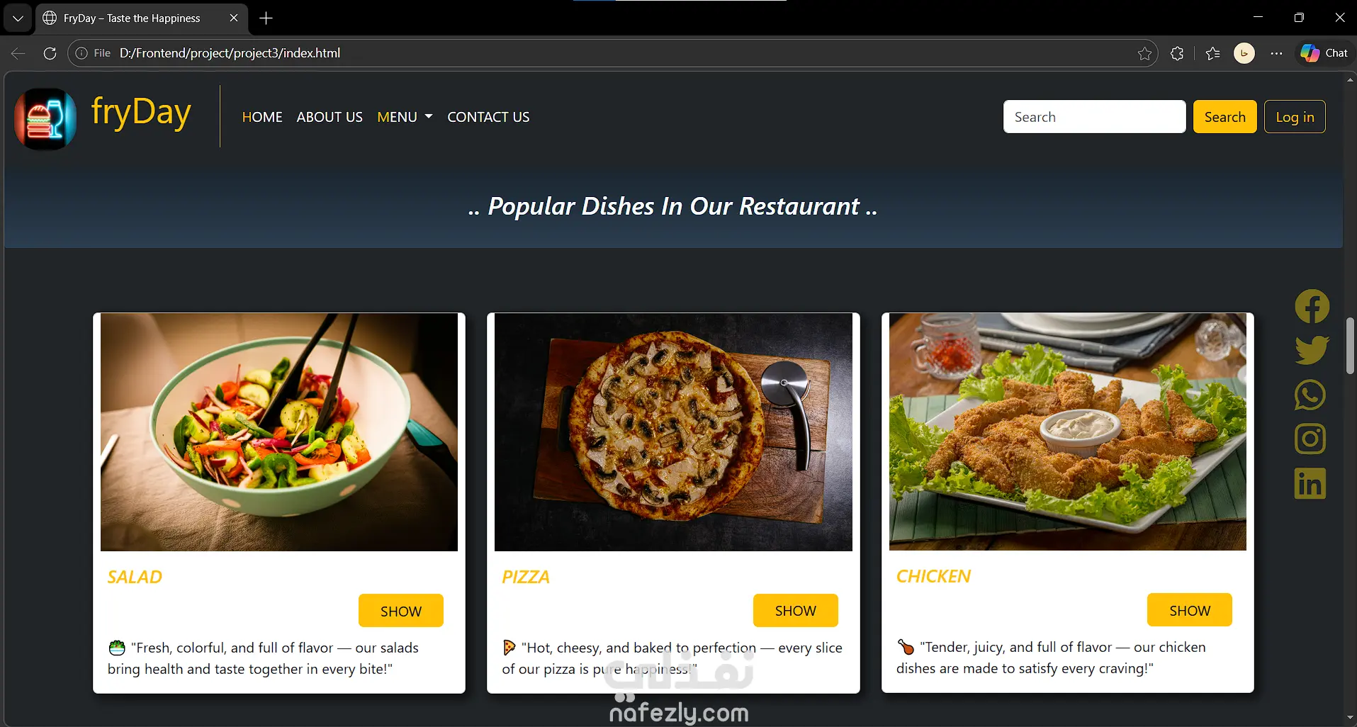 Landing Page احترافية لمطعم باستخدام HTML وCSS وJavaScript