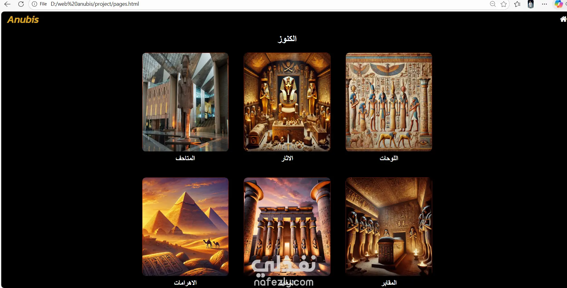 أنوبيس هي منصة ويب مكرسة لعرض عمق وغنى الحضارة المصرية القديمة من خلال تجارب حديثة مدفوعة بالذكاء الاصطناعي. يهدف إلى جعل المحتوى الثقافي أكثر تفاعلية وذكاء وسهولة في الوصول عالميا.