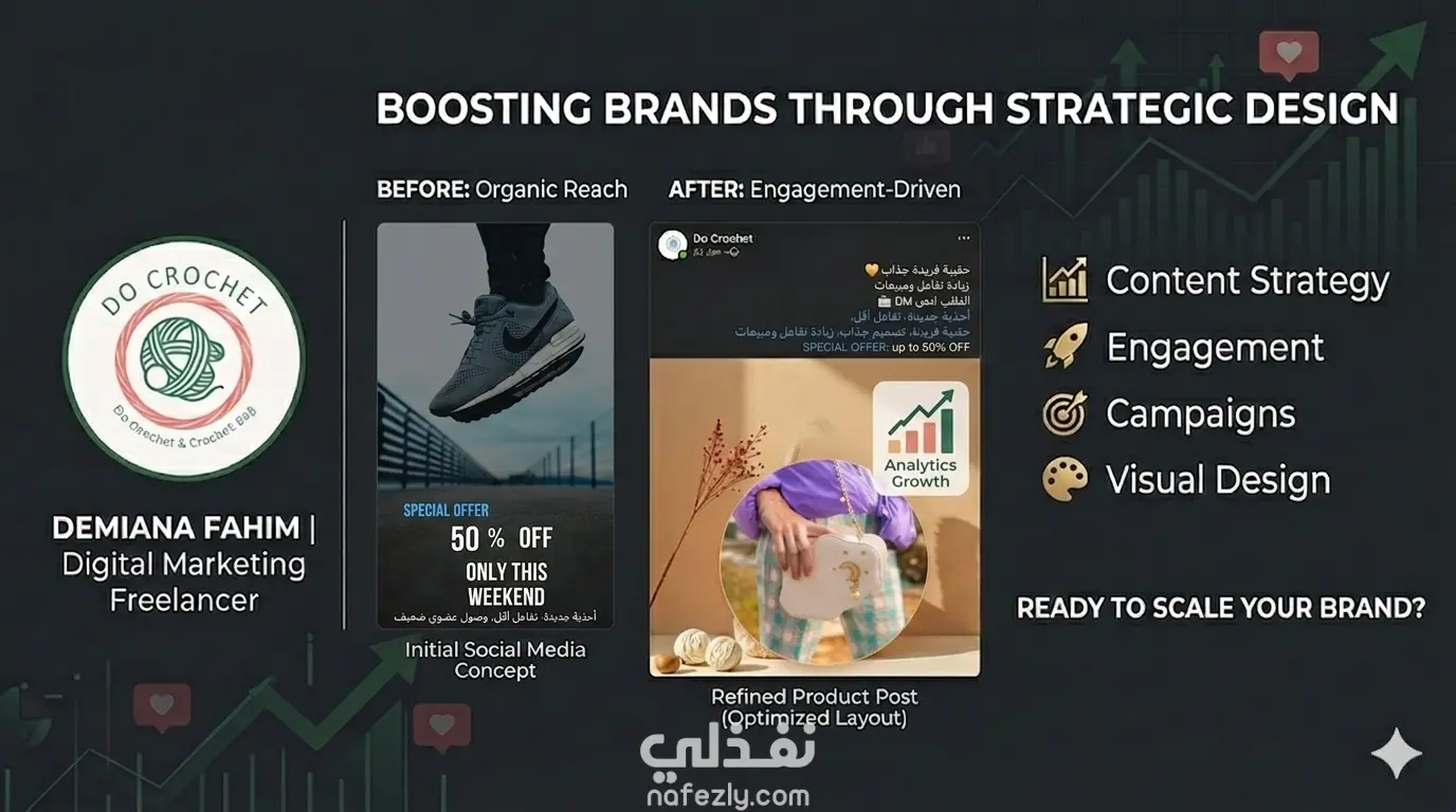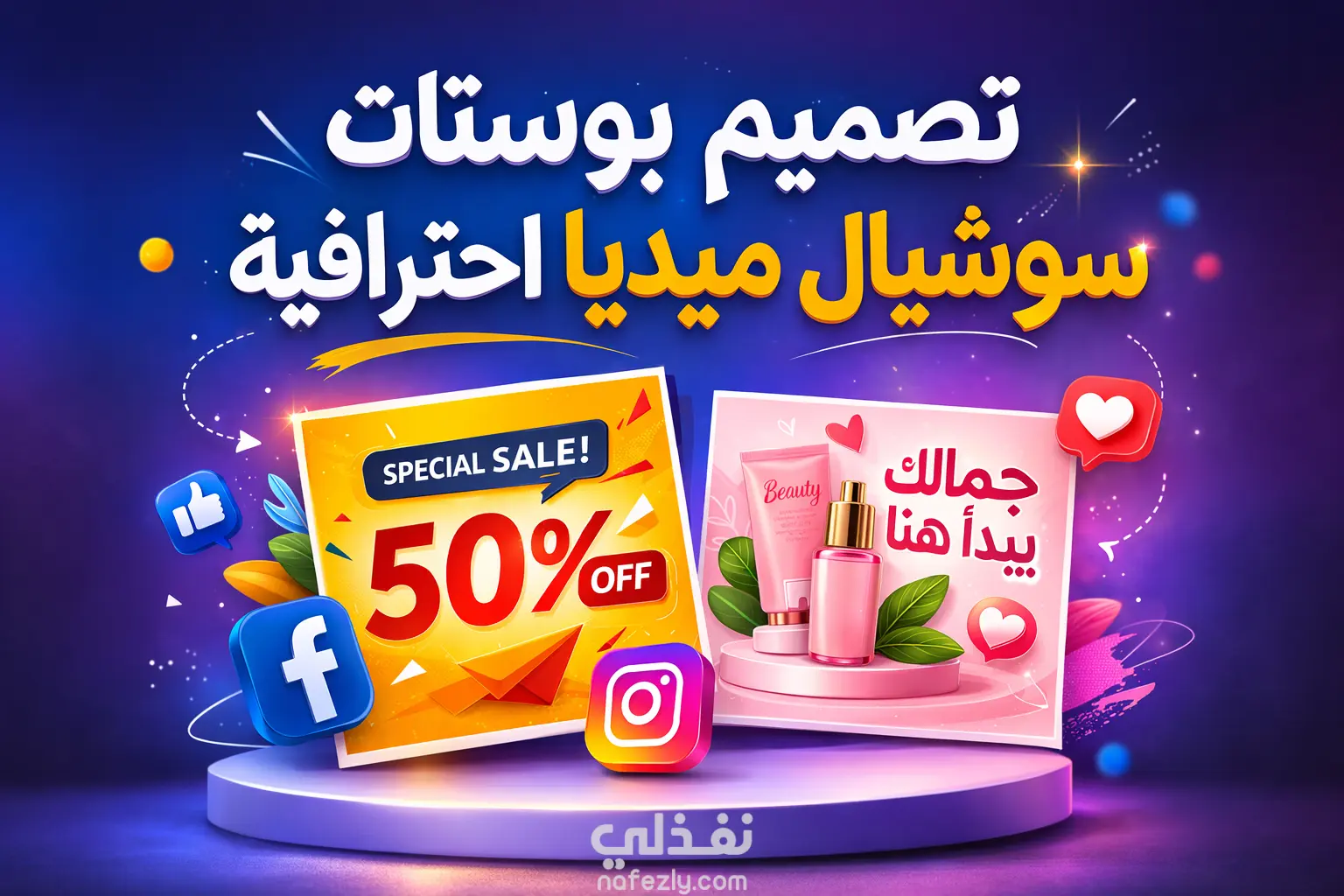 اقدم خدمة تصميم بوستات سوشيال ميديا احترافية تساعدك على عرض منتجاتك أو خدماتك بطريقة جذابة تعكس هوية مشروعك وتلفت انتباه الجمهور.