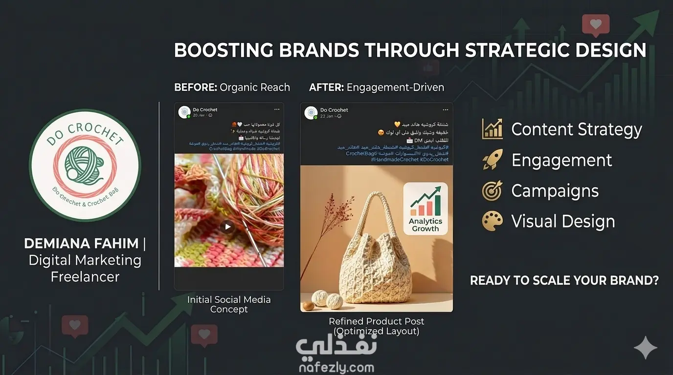 أعمل على تصميم منشورات عصرية مناسبة لمنصات التواصل الاجتماعي مثل فيسبوك وإنستجرام، مع الاهتمام بتنسيق الألوان والخطوط بشكل يجعل التصميم واضحًا وجذابًا ويساعد على زيادة التفاعل مع المحتوى.