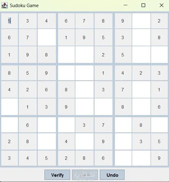 I have implemented the backend and the frontend using java as a programming language for a Sudoku Verification Game which had the following features