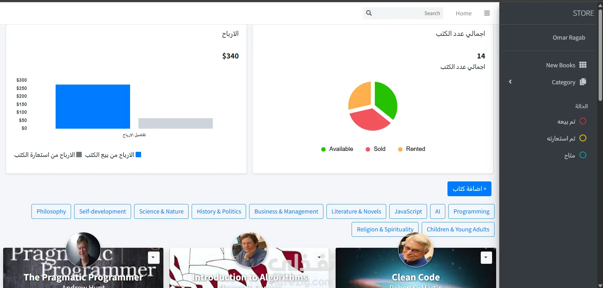 الميزات التقنية: تنفيذ نظام CRUD كامل لإدارة الكتب والعمليات المالية لحظياً.