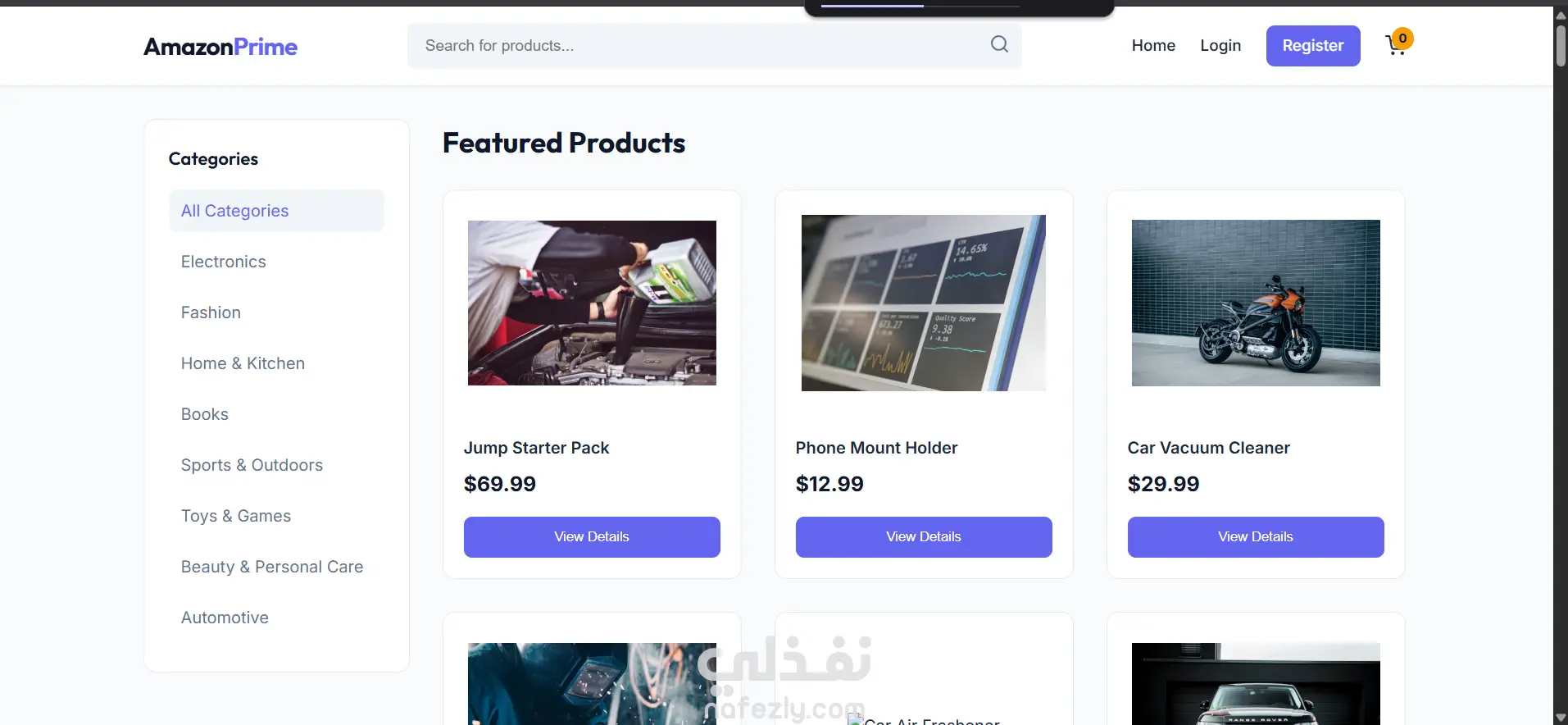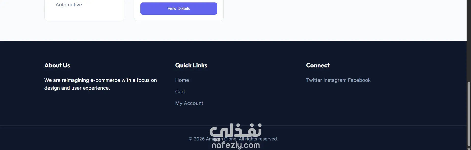 إعادة بناء كاملة لمنصة تجارة إلكترونية متقدمة تحاكي نظام أمازون، مع التركيز على الكفاءة البرمجية وأمان المستخدم.