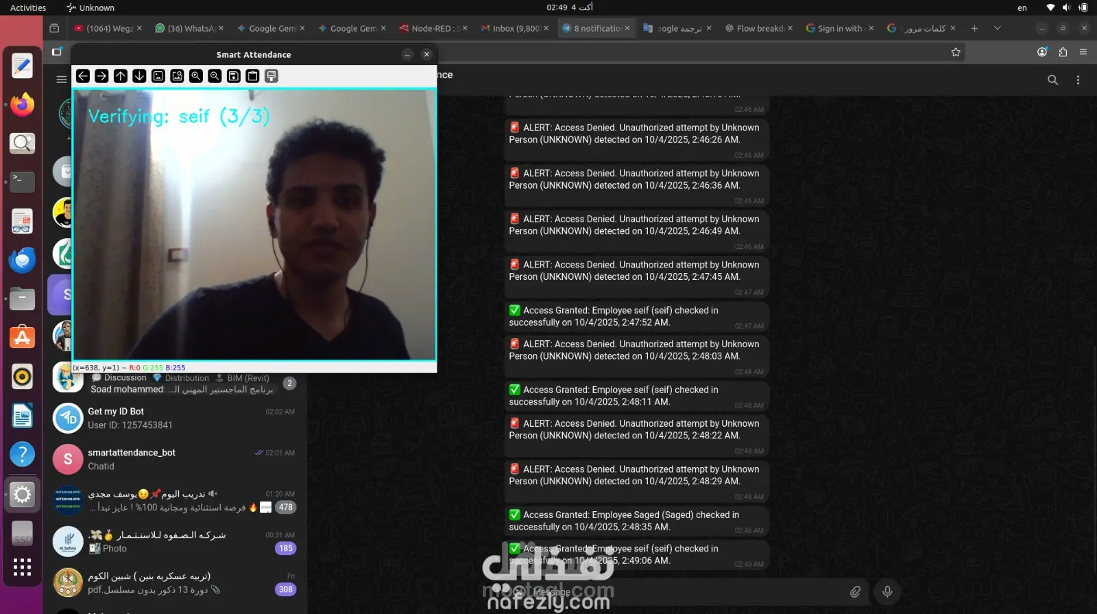 تم تطوير نظام حضور ذكي يعتمد على تقنيات الذكاء الاصطناعي والتعرّف على الوجوه بهدف أتمتة عملية تسجيل حضور الموظفين بشكل دقيق وفعال. أهم مميزات النظام: تم بناء نموذج للتعرّف على الوجوه قادر على تحديد هوية الموظفين بدقة عالية. عند اكتشاف وجه الشخص بواسطة الكاميرا، يقوم النظام بمطابقته مع قاعدة بيانات الموظفين المسجّلين. بعد التحقق من الهوية، يتم تسجيل الحضور تلقائيًا مع الوقت والتاريخ (Timestamp). يتم تخزين جميع سجلات الحضور بشكل آمن داخل قاعدة بيانات لسهولة المتابعة والإدارة. يساهم النظام في إلغاء الطرق اليدوية التقليدية لتسجيل الحضور، مما يزيد من الدقة والكفاءة ويقلل الأخطاء البشرية. يعكس هذا المشروع التطبيق العملي لتقنيات الرؤية الحاسوبية والذكاء الاصطناعي في تطوير أنظمة أتمتة الأعمال وتحسين إدارة الموارد البشرية داخل المؤسسات.