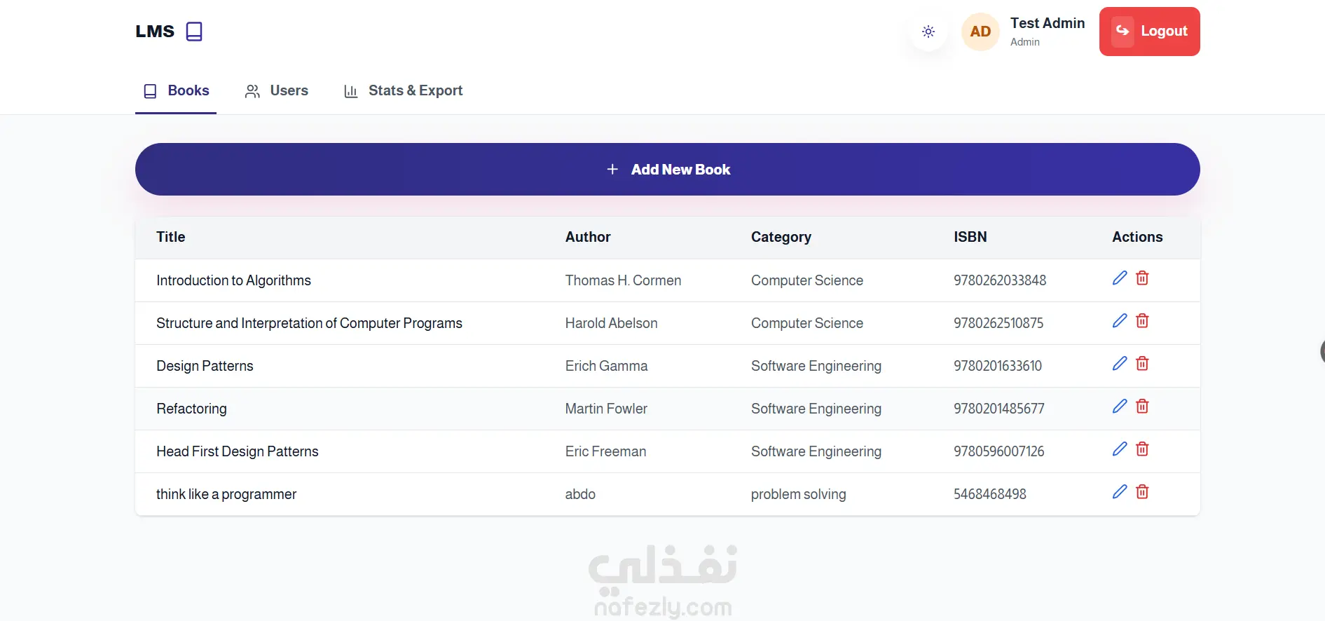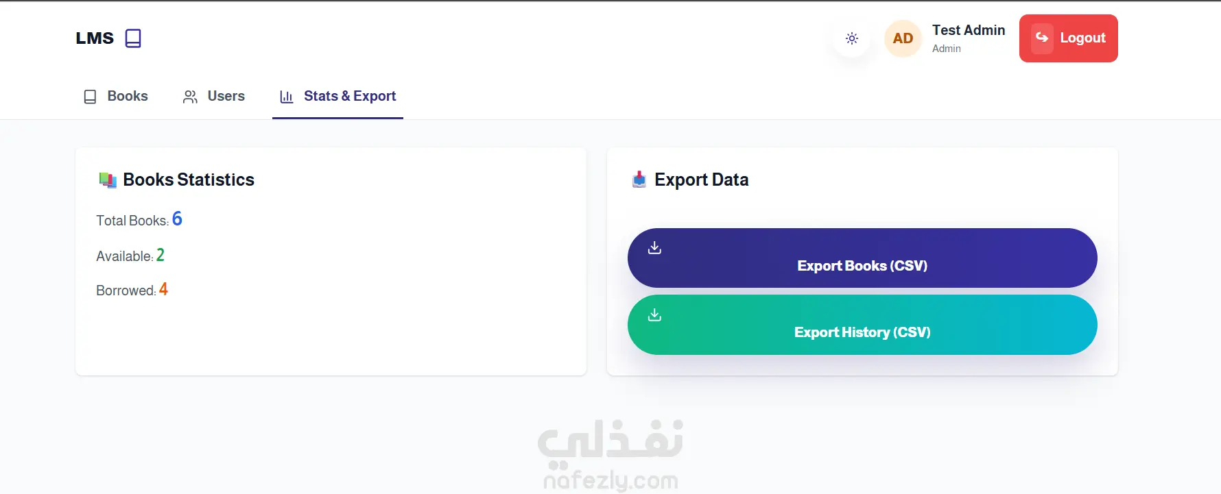 * لوحة تحكم لإدارة الكتب