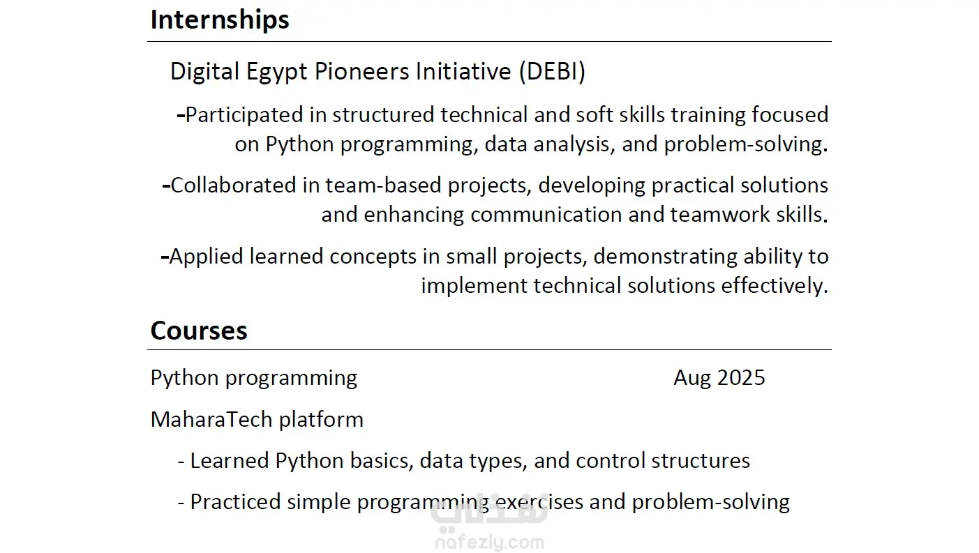 هل تحتاج إلى سيرة ذاتية احترافية للتقديم على الوظائف؟ أقدم خدمة تصميم وتنسيق CV احترافي باستخدام Microsoft Word بشكل منظم وجذاب يساعدك على إبراز مهاراتك وخبراتك بطريقة واضحة. ما الذي ستحصل عليه: • تصميم CV منظم وسهل القراءة • تنسيق احترافي للأقسام والمعلومات • ملف قابل للتعديل بصيغة Word • تسليم نسخة PDF جاهزة للإرسال الأداة المستخدمة: Microsoft Word أحرص على تقديم العمل بجودة عالية وتسليم سريع.