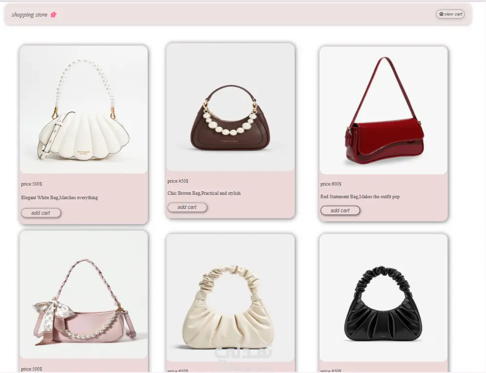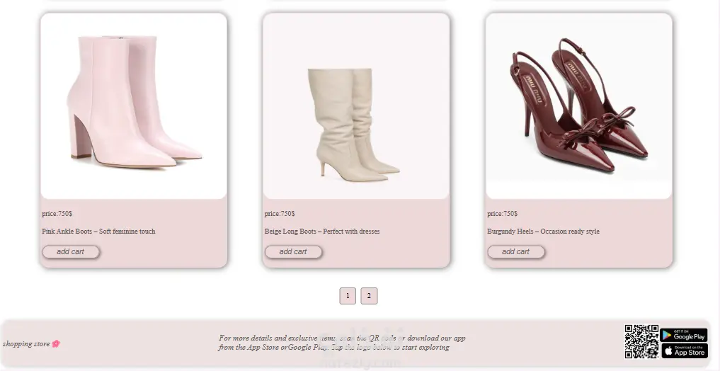 تعرض مجموعة من الإكسسوارات مثل الشنط والأحذية، بحيث يستطيع المستخدم الانتقال إليها بسهولة من الصفحة الأولى لتصفح باقي المنتجات.
