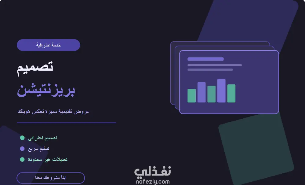 سأصمم لك بريزنتيشن احترافي يترك أثراً لا يُنسى ✨ هل تحتاج إلى عرض تقديمي يعكس احترافيتك ويوصل فكرتك بوضوح وتأثير؟ أقدم لك خدمة تصميم بريزنتيشن متكامل يجمع بين الجمال البصري والمحتوى المنظم، سواء كان لشركتك، مشروعك، أو أي هدف تسعى إليه. ماذا ستحصل عليه؟ سلايدات مصممة باحترافية عالية تصميم متناسق في الألوان والخطوط والأيقونات محتوى واضح ومرتب يسهل على جمهورك الفهم والتفاعل ملف قابل للتعديل + نسخة PDF جاهزة للعرض لماذا تختارني؟ خبرة في تصميم عروض لأغراض متنوعة (أعمال، أكاديمي، تسويق) التزام بالمواعيد والجودة تعديلات مجانية حتى رضاك التام تواصل معي الآن وأخبرني بتفاصيل مشروعك! 🚀