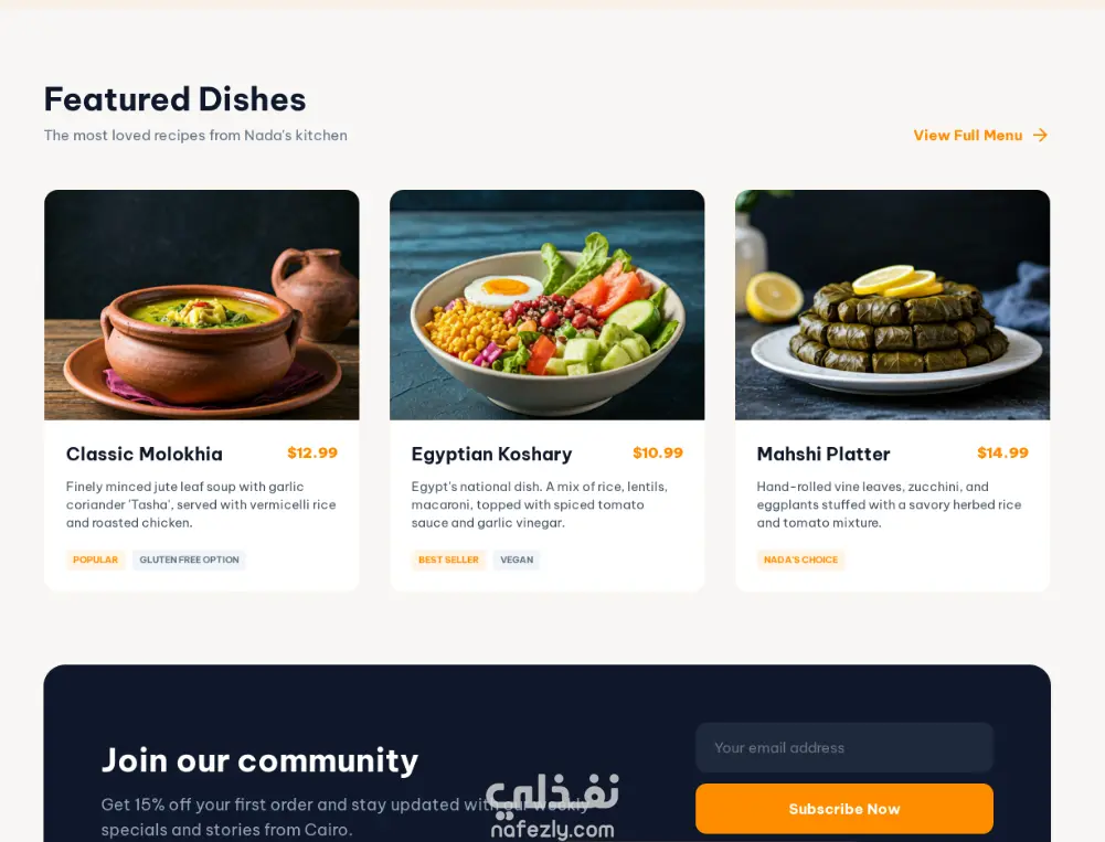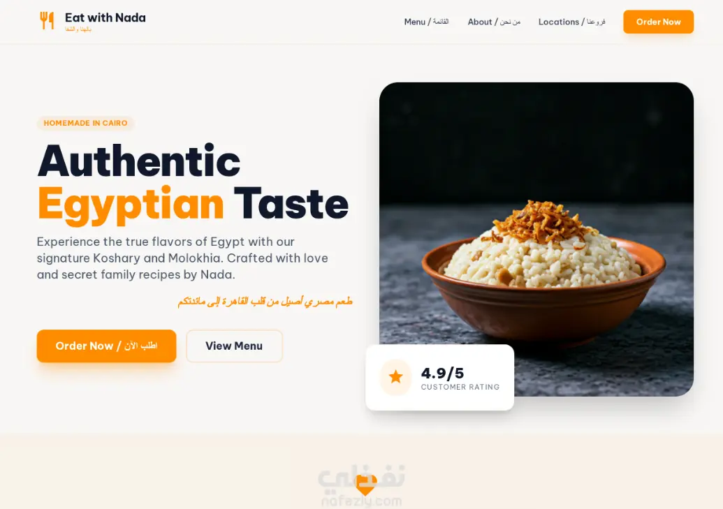 ويبسايت لمطعم ماكولات مصرية عرض جميع الاكلات بشكل احترافى يقوم بجذب المتصفح بشكل سلس للغاية وويتسم بالبساطة والسلاسة