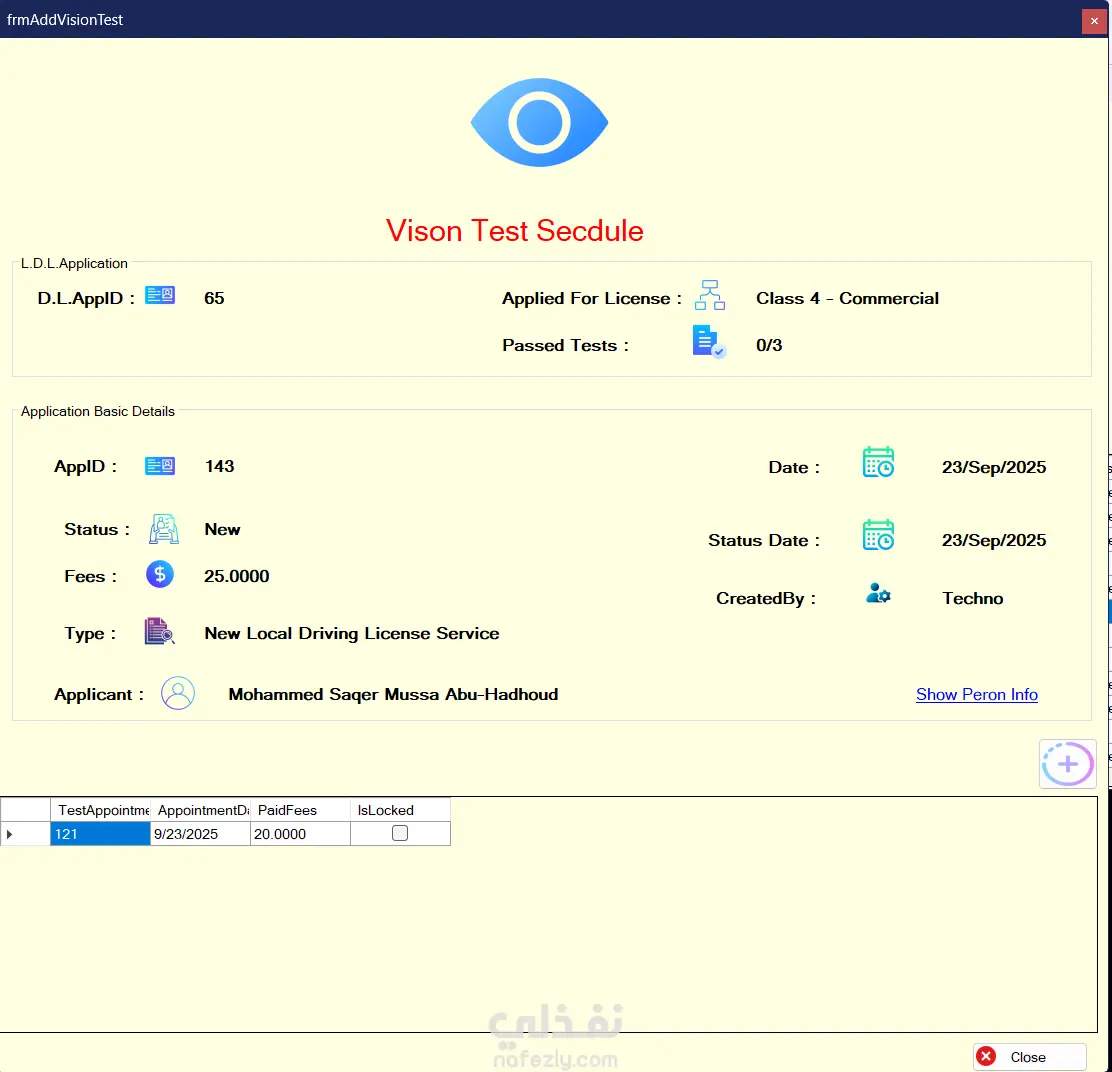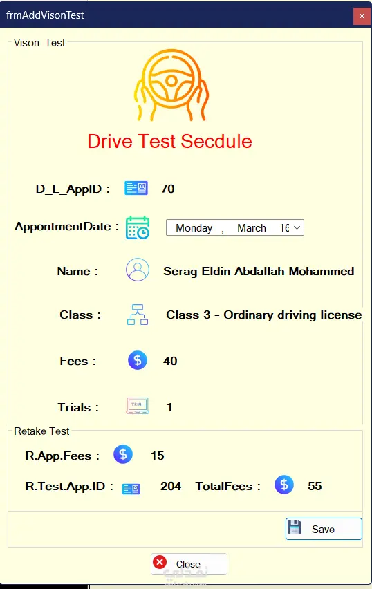 نظام (اداره رخص السيارات) هو نظام لإدارة إصدار وتنظيم رخص القيادة. يتيح النظام تسجيل الأشخاص في قاعدة البيانات وربطهم بالطلبات المختلفة الخاصة بخدمات الرخص. يدعم النظام عدة خدمات مثل إصدار رخصة لأول مرة، تجديد الرخصة، إعادة الفحص، وإصدار بدل فاقد أو تالف. كما يقوم بإدارة الاختبارات المطلوبة للحصول على الرخصة مثل فحص النظر والاختبار النظري والعملي. بالإضافة إلى ذلك يوفر النظام إدارة للمستخدمين والطلبات مع إمكانية البحث والتتبع باستخدام الرقم الوطني