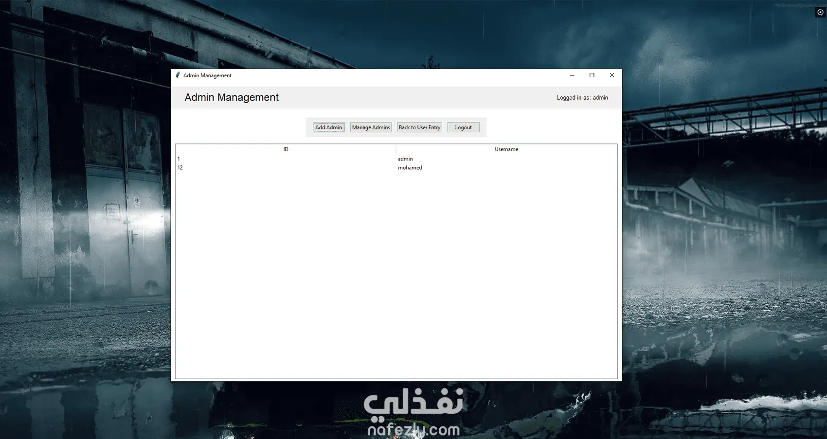 إدارة المشرفين: إضافة مشرفين جدد، تحديث كلمات المرور، وحذف المشرفين مع حماية بكلمة مرور.
