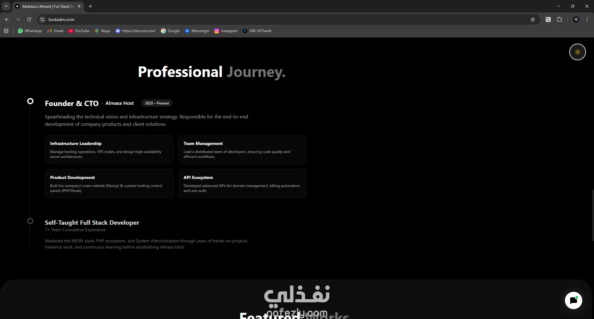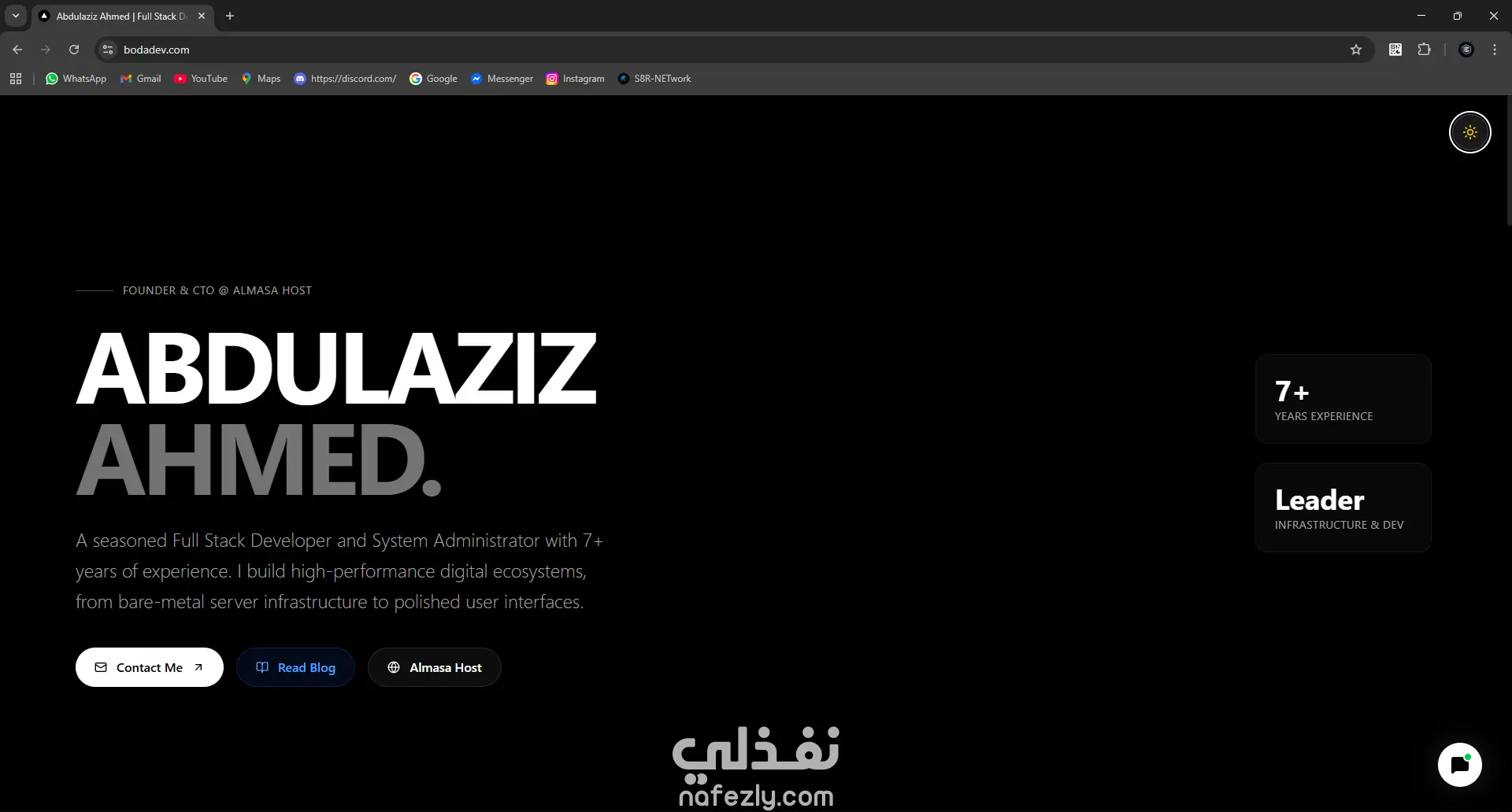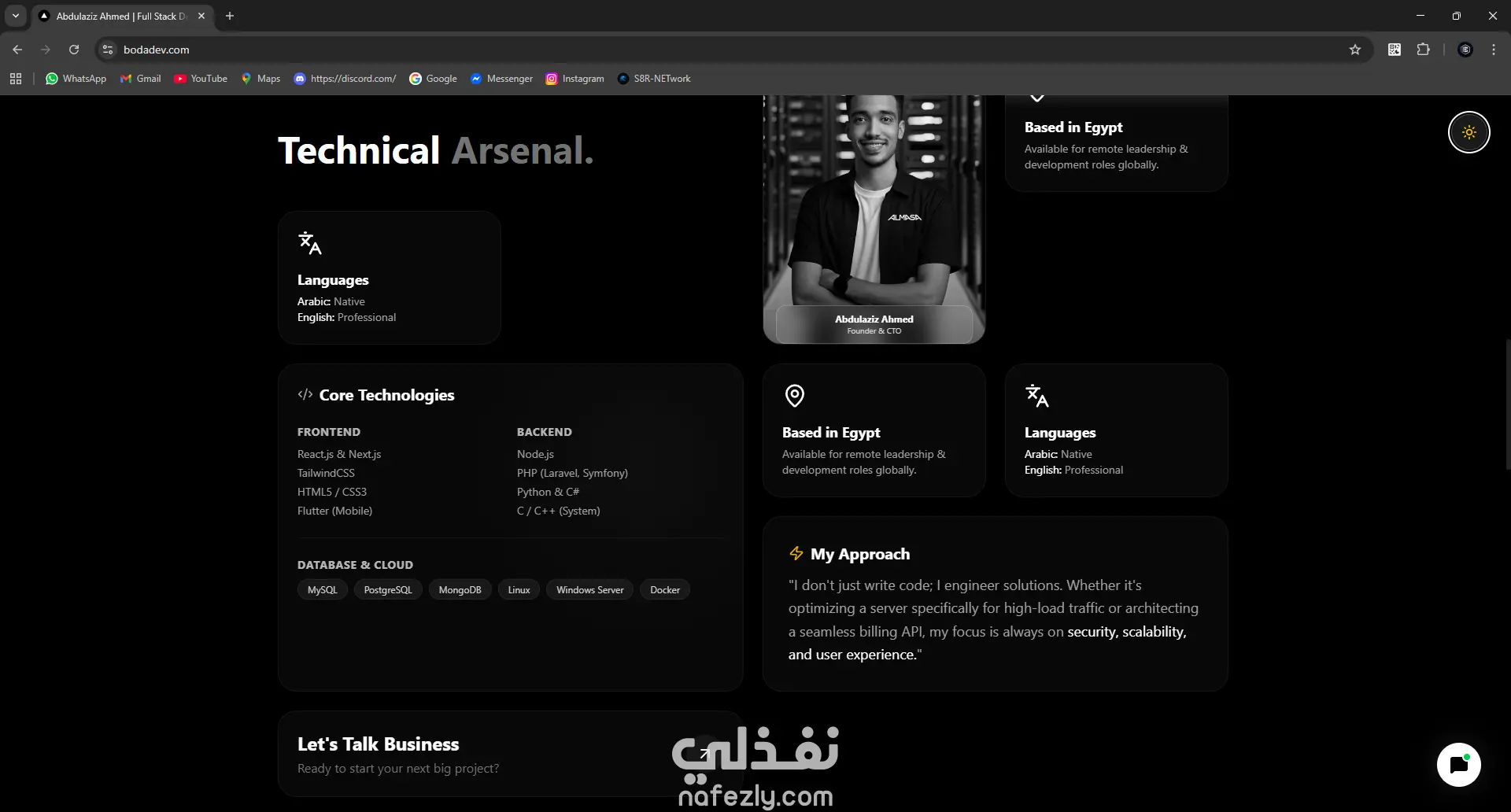 صفحة هبوط شخصية لمبرمج قابلة للتخصيص بالكامل. هذا مجرد مثال توضيحي، ويمكنني تصميم وتطوير أي موقع خاص حسب احتياجاتك ومتطلباتك.