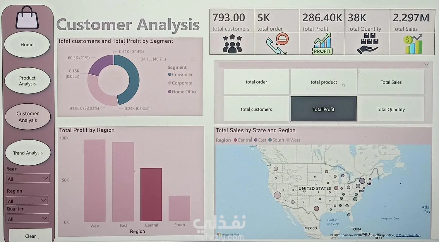 تقرير تحليل التجارة الالكترونية الشامل: مشروع متكامل لتحليل بيانات التسوق بأستخدام Power Bi يعتمد علي بناء نموذج بيانات مترابط يربط بين المبيعات والمنتجات وسلوك العملاء لتوفير رؤية 360 درجة لاداء المبيعات تم تصميم التقرير ب 4 واجهات تفاعلية مترابطة لسهولة التنقل : 1-Home: ملخص لأهم مؤشرات الاداء (KPIS) 2-product Analysis : لمراقبة اداء الاصناف وتحديدا الاكثر مبيعا وربحية 3- customer Analysis لدراسة الانماط الشرائيه وتقسيم العملاء 4-trend Analysis لرصد التغيرات الزمنية والتنبؤ المستقبلي المهارات: data modeling حيث تم ربط الجداول وبناء علاقات لضمان دقه البيانات DAX formulas interactive ui/ux تصميم واجهه مستخدم باستخدام buttons وال bookmarks للتنقل السلس