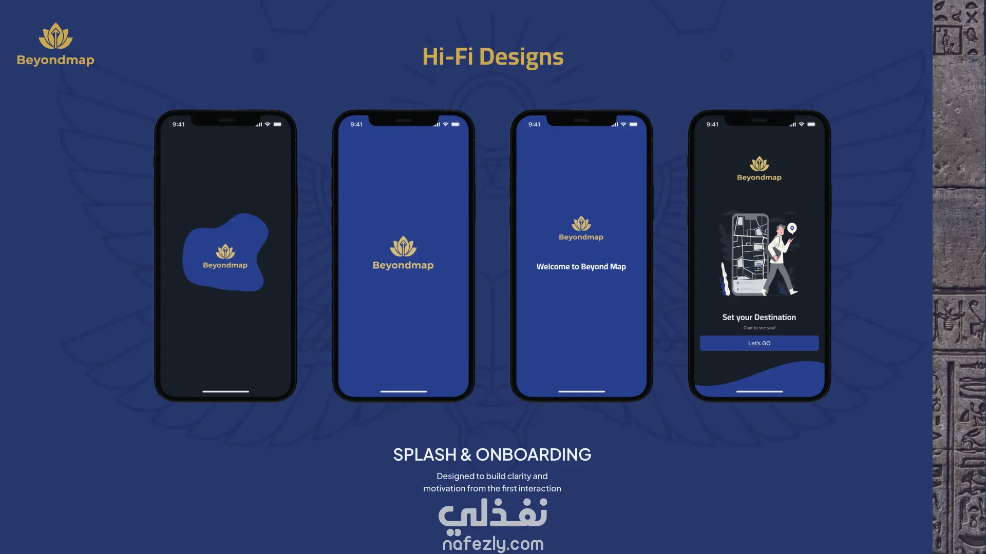 استلهام الهوية البصرية للتطبيق من الجماليات المصرية القديمة لإعطاء التطبيق طابعًا مميزًا يعكس الثقافة المحلية.