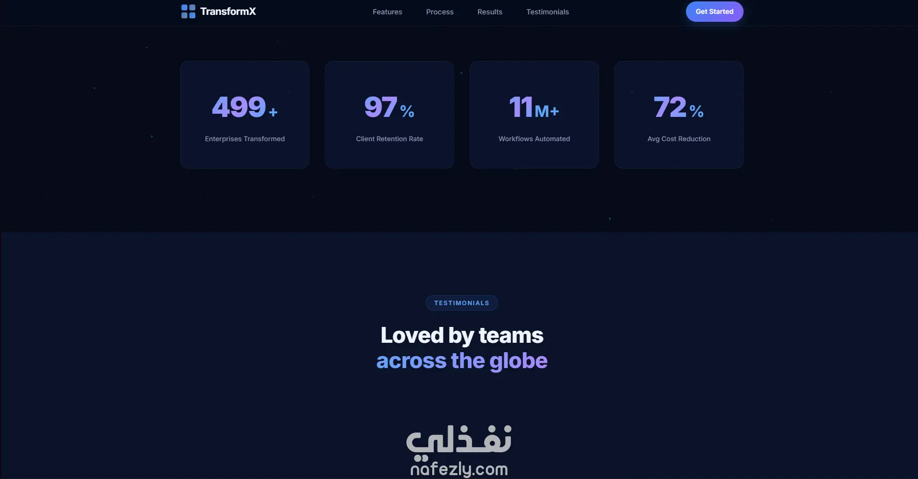 عبارة عن صفحة هبوط (Landing Page) حديثة وعالية الأداء، مصممة خصيصاً لشركات التحول الرقمي ومقدمي خدمات الـ B2B. تم بناء الواجهة بالكامل من الصفر باستخدام HTML5 وCSS3 وJavaScript (Vanilla JS) دون الاعتماد على أي مكتبات أو أطر عمل خارجية لضمان أقصى سرعة للموقع. تعتمد واجهة المستخدم على تقنيات تصميم متقدمة مثل التأثير الزجاجي (Glassmorphism)، والتدرجات اللونية المتحركة (Animated Gradients)، وعناصر واجهة المستخدم العائمة (Floating Elements) لتقديم مظهر تقني احترافي وجذاب. يشتمل المشروع على ميزات تفاعلية متقدمة، أبرزها: خلفية شبكية متحركة للجسيمات (Particle Network) مبرمجة باستخدام HTML5 Canvas، وحركات ظهور للعناصر عند التمرير (Scroll Reveal Animations)، وشريط تنقل ذكي (Sticky Navbar)، وعدادات إحصائيات متحركة تفاعلية، وتمرير سلس بين أقسام الصفحة (Smooth Scrolling). التصميم متجاوب بالكامل (Fully Responsive) ليتكيف تلقائياً مع جميع الشاشات، مما يضمن تجربة مستخدم سلسة وممتازة سواء على أجهزة الكمبيوتر المكتبية، الأجهزة اللوحية، أو الهواتف الذكية.