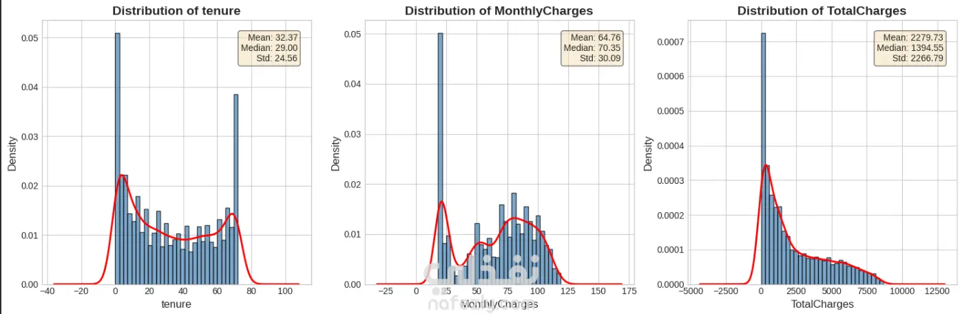 في هذا المشروع تم استكشاف البيانات وتنظيفها وتحليل العلاقات بين المتغيرات مثل مدة الاشتراك، نوع العقد، الخدمات المستخدمة، والفواتير الشهرية لمعرفة العوامل التي تؤثر على قرار العميل في الاستمرار أو المغادرة.