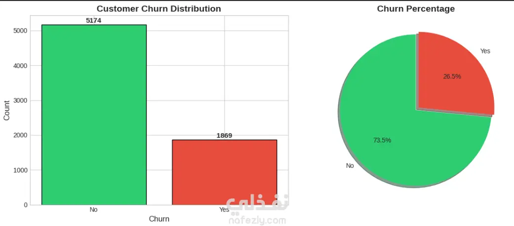 قمت بتنفيذ مشروع لتحليل بيانات انسحاب العملاء (Customer Churn) لشركة اتصالات بهدف فهم أسباب مغادرة العملاء والتنبؤ بالعملاء المحتمل انسحابهم باستخدام تقنيات تحليل البيانات وتعلم الآلة في Python.