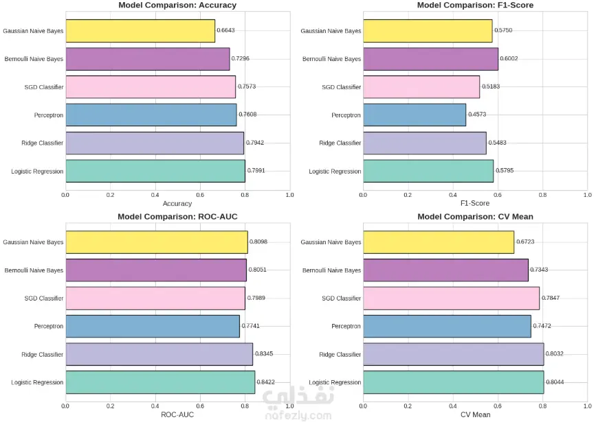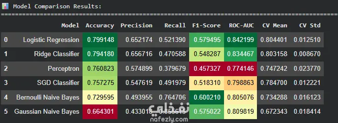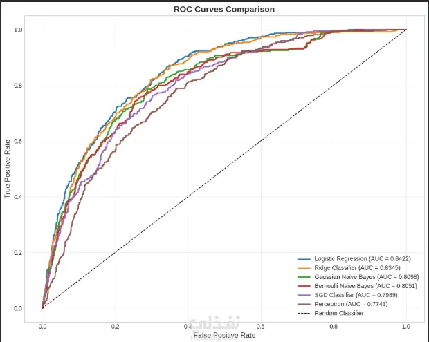 بعد ذلك تم بناء عدة نماذج Machine Learning للمقارنة بينها والتنبؤ بانسحاب العملاء مثل:
