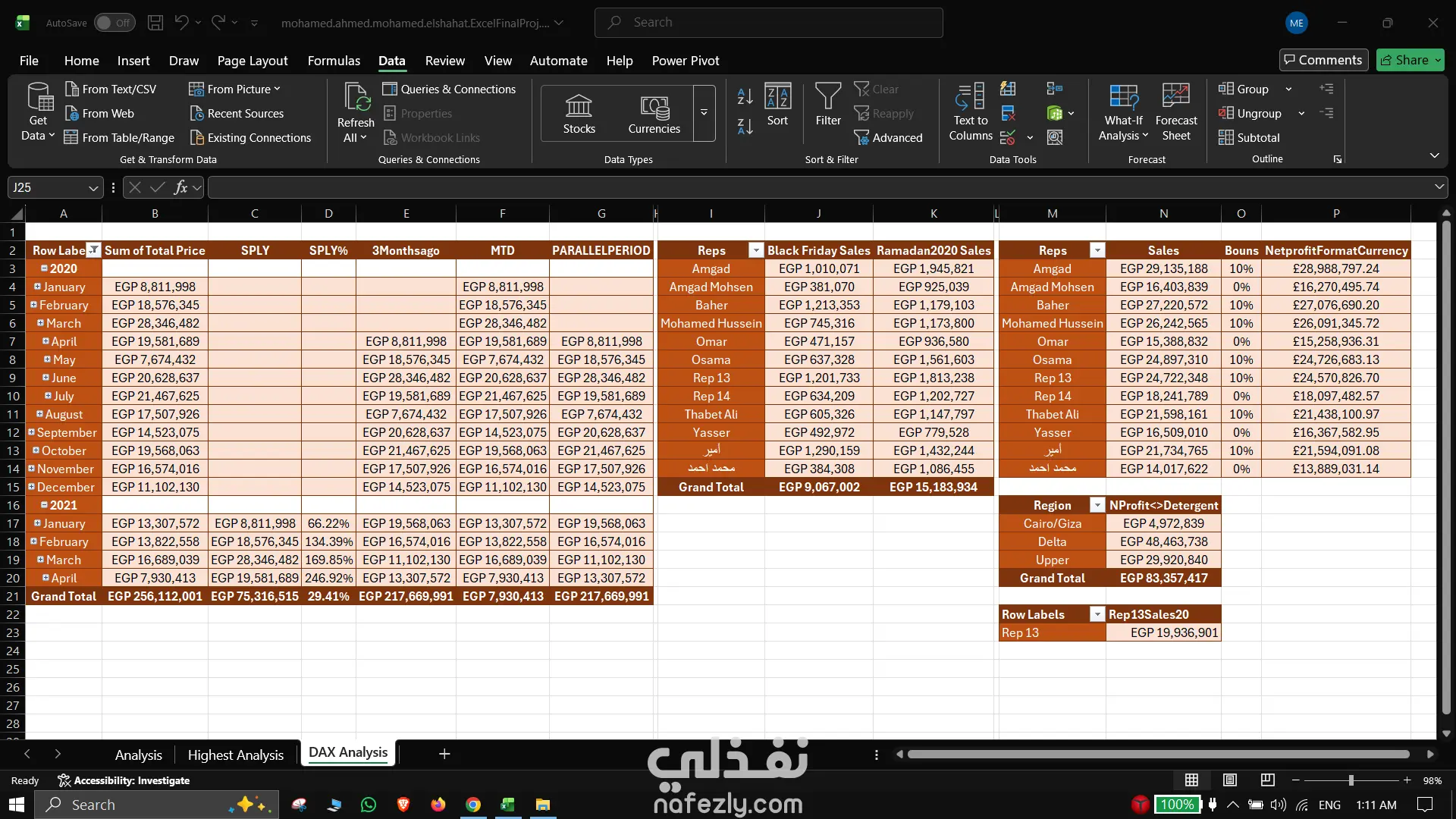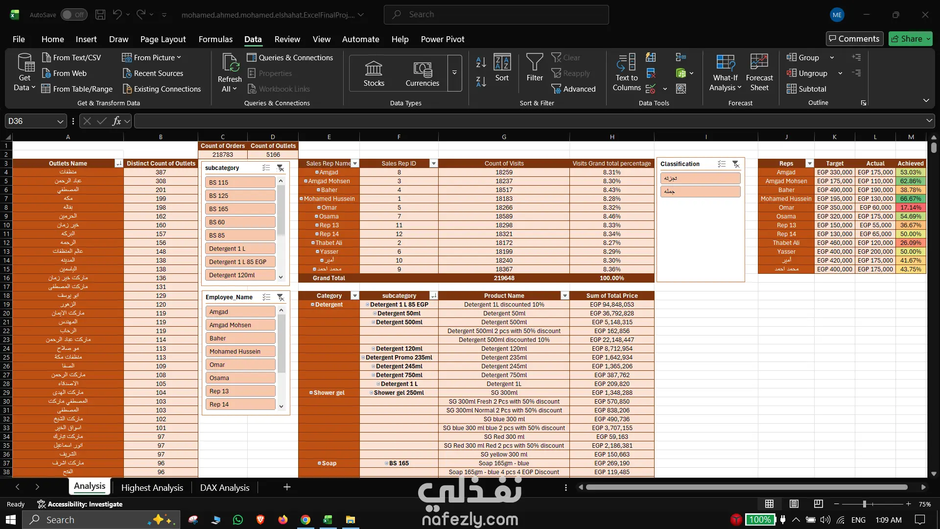 تحليل أداء المبيعات الاحترافي | Excel