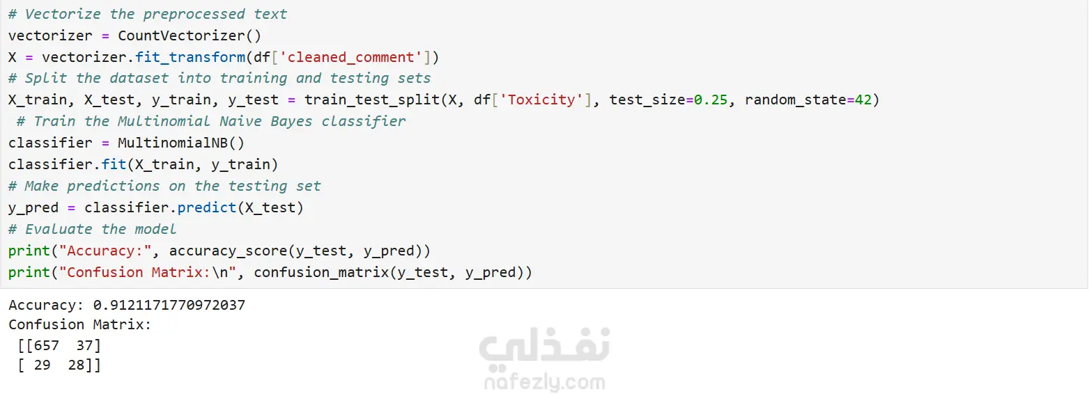 ToxicityShield is an end-to-end Natural Language Processing (NLP) pipeline designed to identify and categorize toxic content within social media datasets. Developed using Python and industry-standard machine learning libraries, the project addresses the critical need for automated moderation in digital spaces. The system processes raw tweet data through a rigorous cleaning and normalization phase—utilizing NLTK for tokenization, lemmatization, and stop-word removal—to ensure high-quality input for the model. By implementing a Multinomial Naive Bayes classifier paired with Count Vectorization, the project achieves a high level of predictive accuracy in distinguishing between neutral and harmful text. Technical Highlights Data Pipeline: Engineered a robust preprocessing function that handles noise in text data, including special character removal and case normalization. Model Performance: Achieved a classification accuracy of 91.2% on balanced testing sets. Feature Engineering: Utilized a Bag-of-Words (BoW) approach to transform unstructured text into high-dimensional feature vectors for model training. Evaluation: Validated results through detailed confusion matrices to minimize false negatives in toxicity detection.