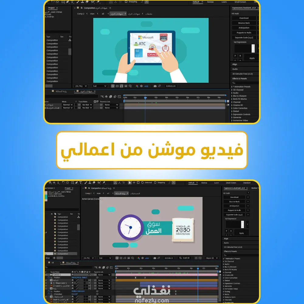 Adobe After Effects (التحريك الأساسي والمؤثرات).