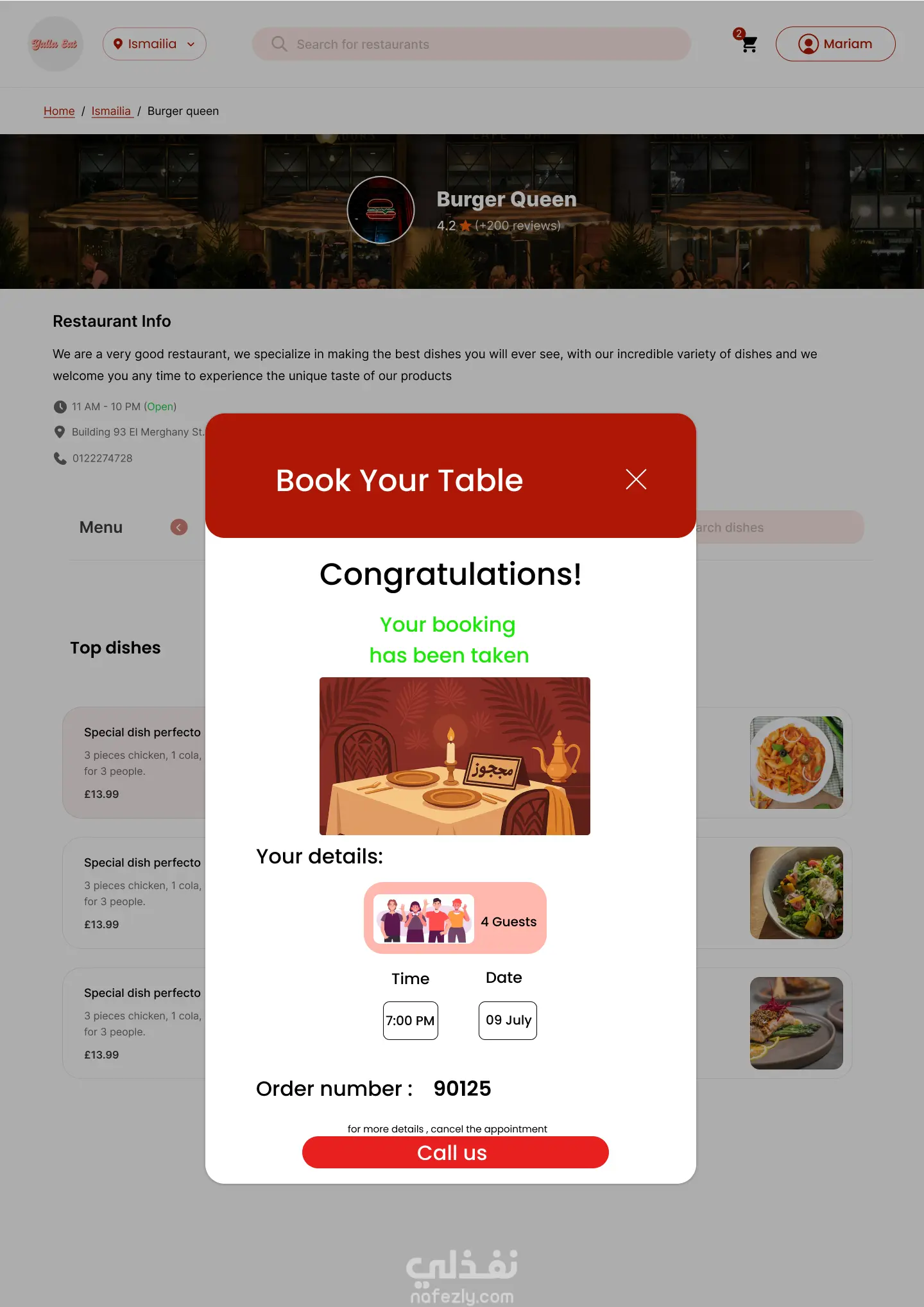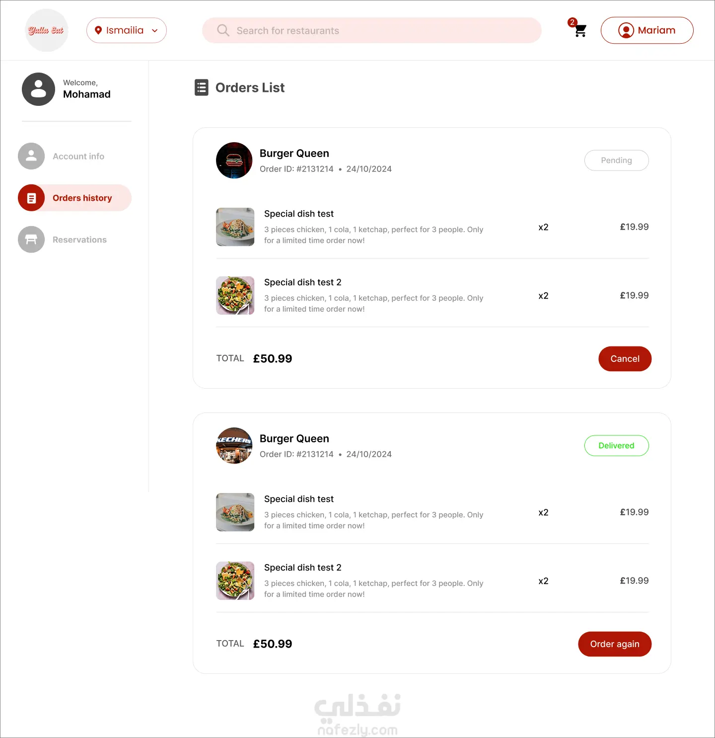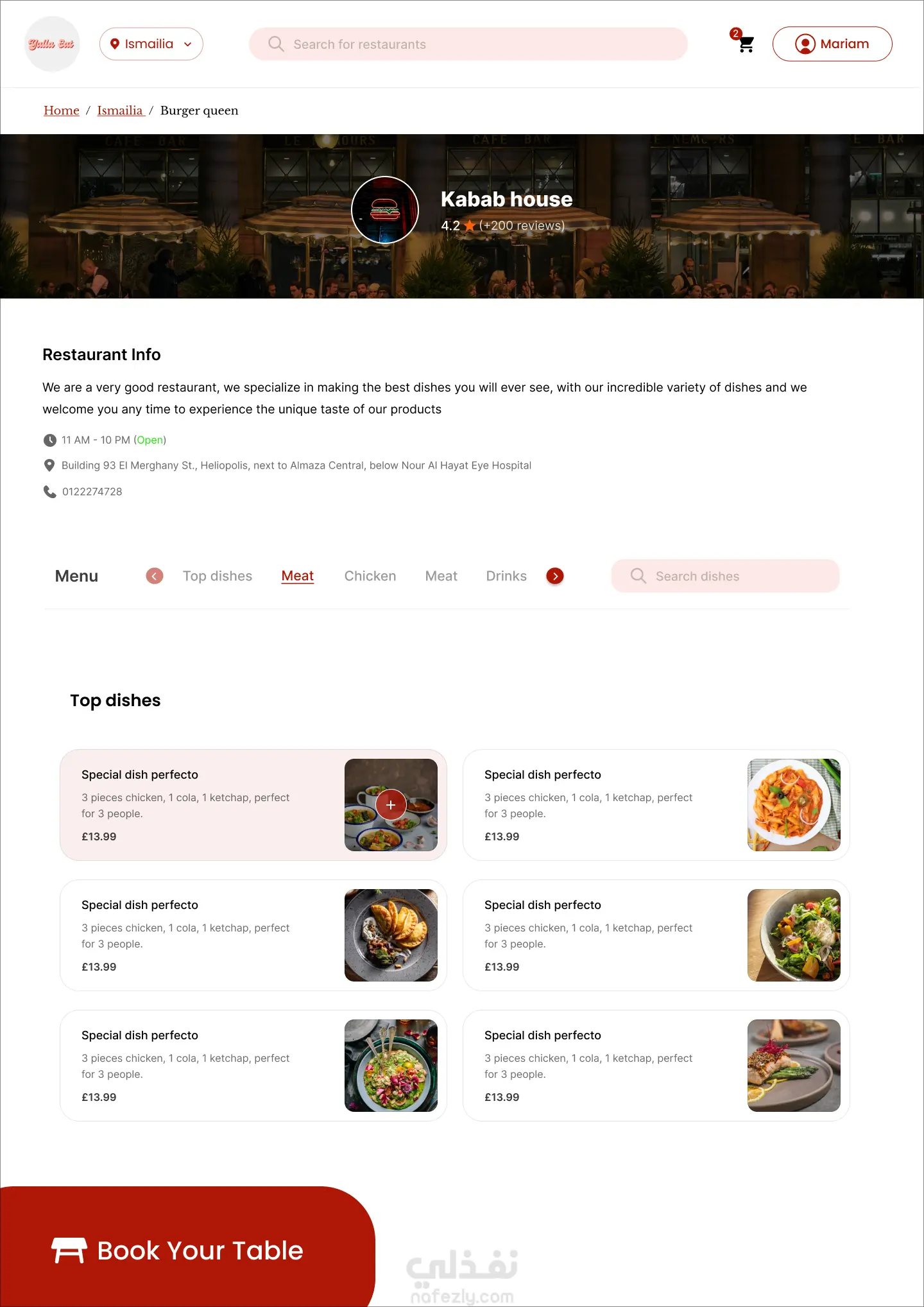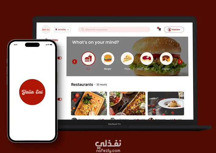 ركز التصميم على تقديم تجربة مستخدم سلسة تساعد المستخدم على تصفح المطاعم، استكشاف قوائم الطعام، وإتمام الطلب أو الحجز بسهولة.