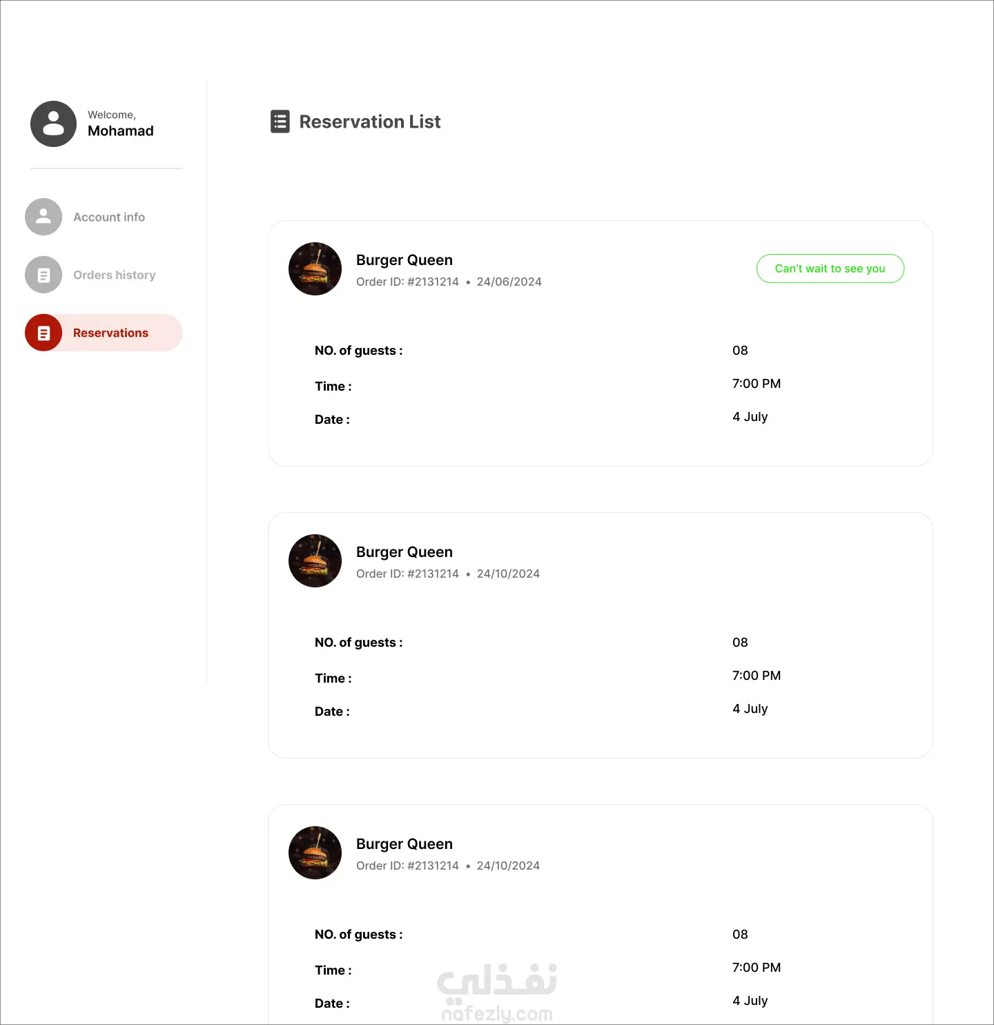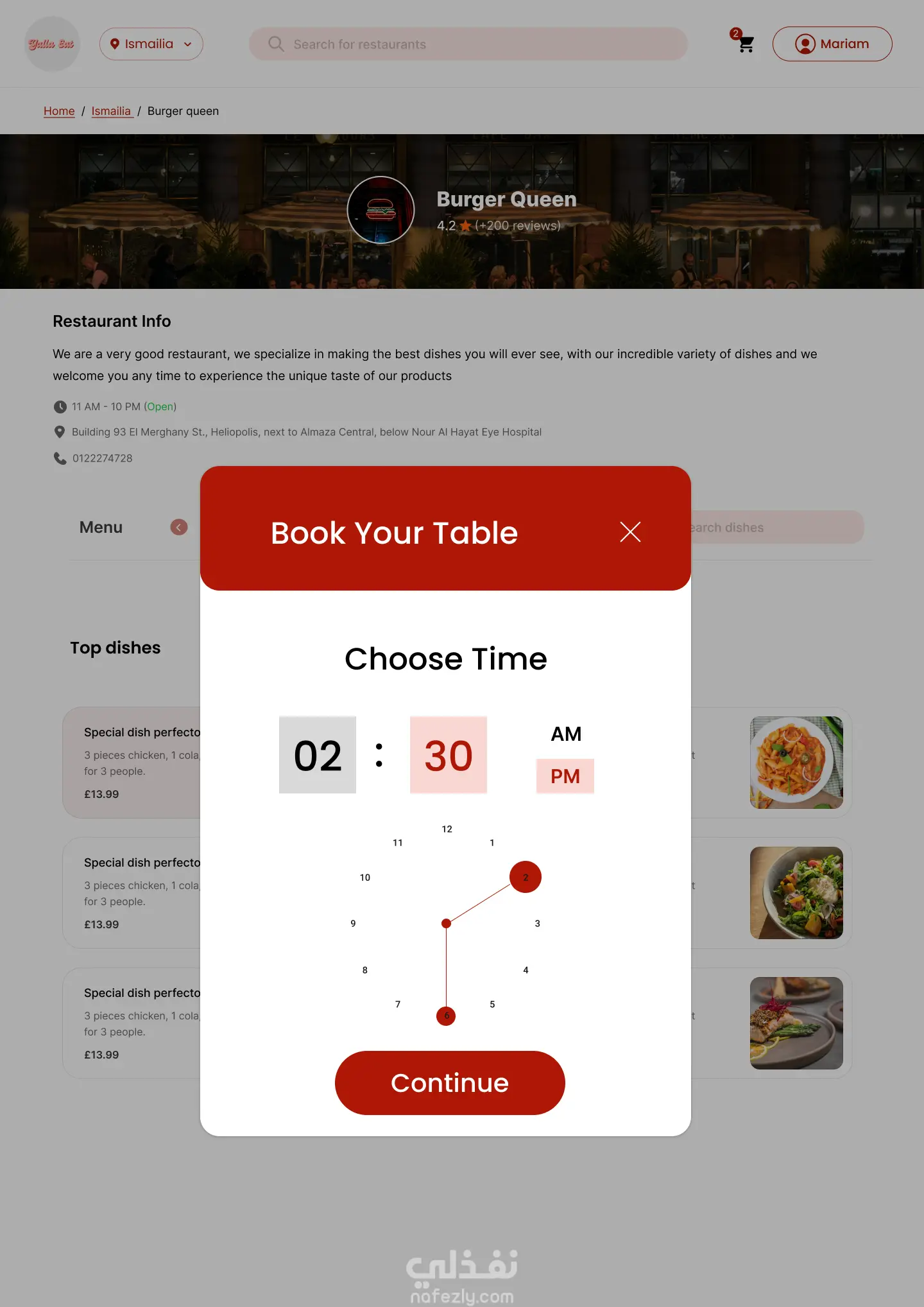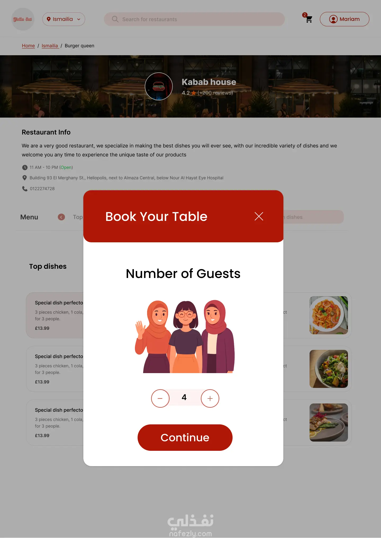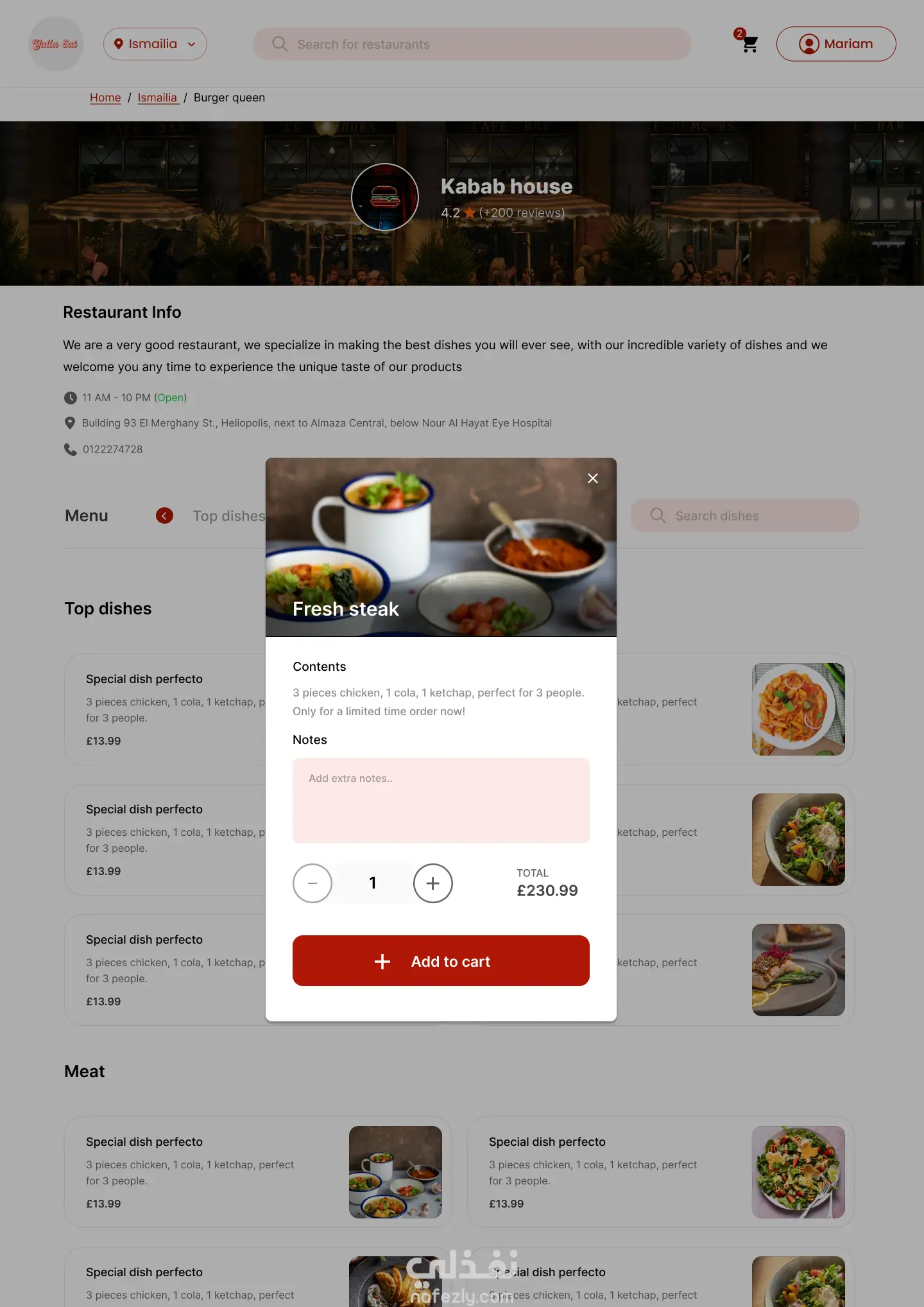 ركز التصميم على تقديم تجربة مستخدم سلسة تساعد المستخدم على تصفح المطاعم، استكشاف قوائم الطعام، وإتمام الطلب أو الحجز بسهولة.
