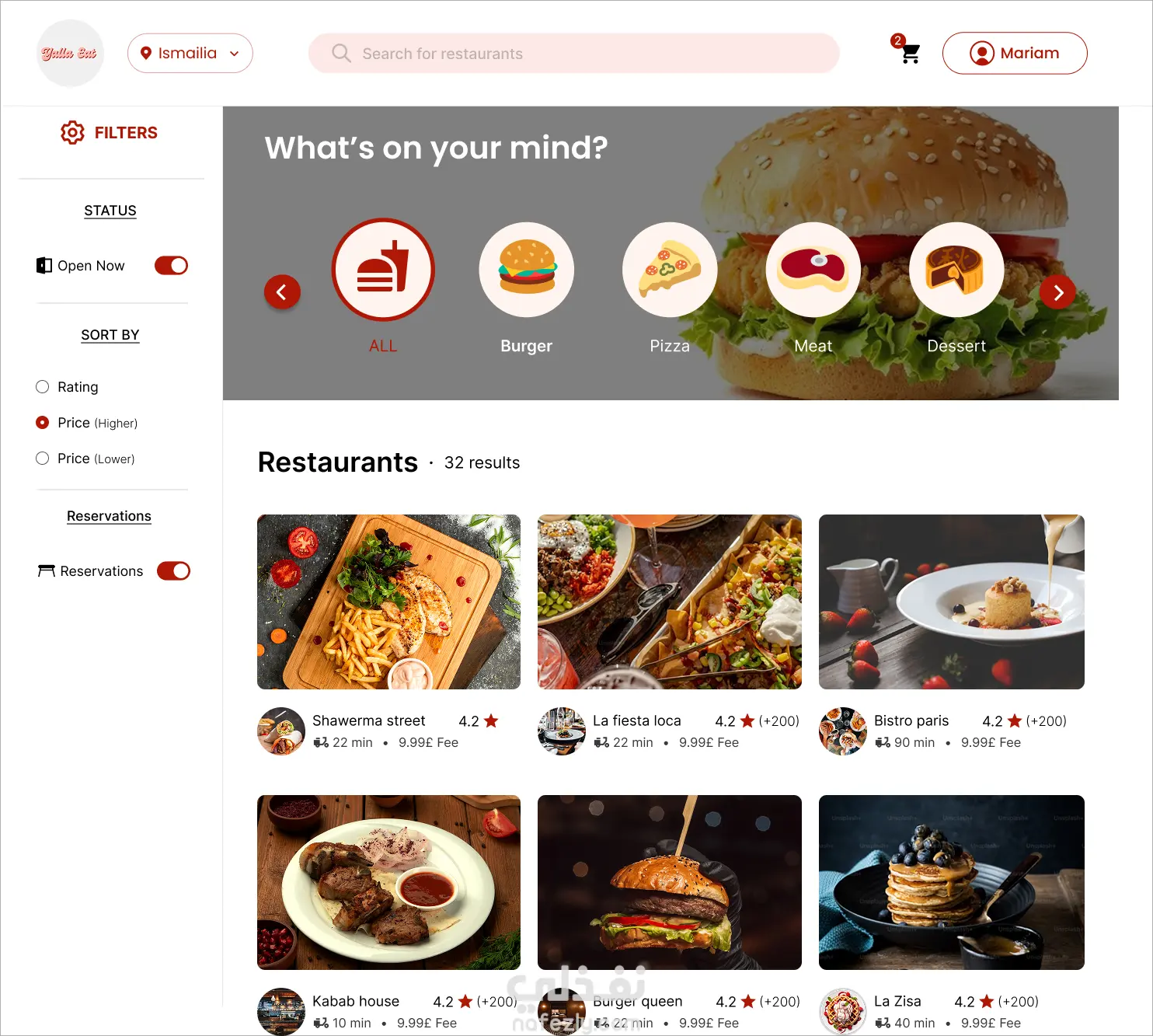 مشروع Yalla Eat هو تصميم واجهة وتجربة مستخدم لتطبيق وموقع يهدف إلى تسهيل عملية طلب الطعام وحجز المطاعم بطريقة سريعة وسهلة الاستخدام.