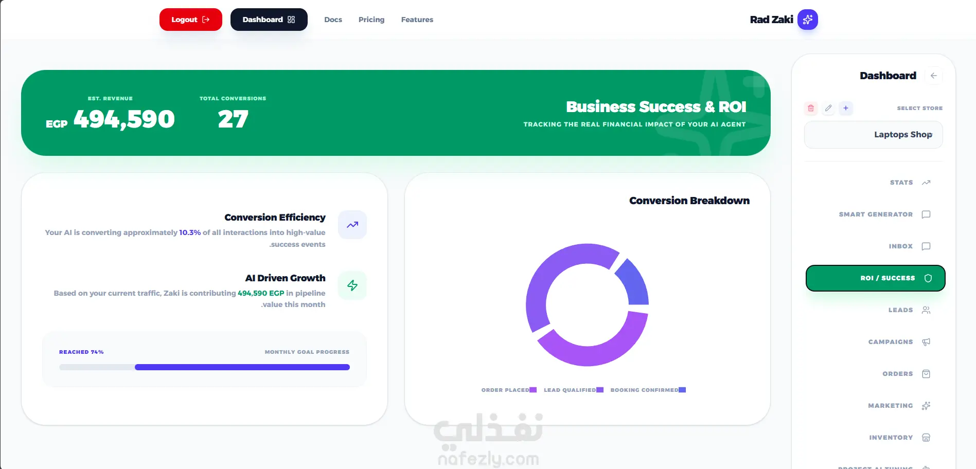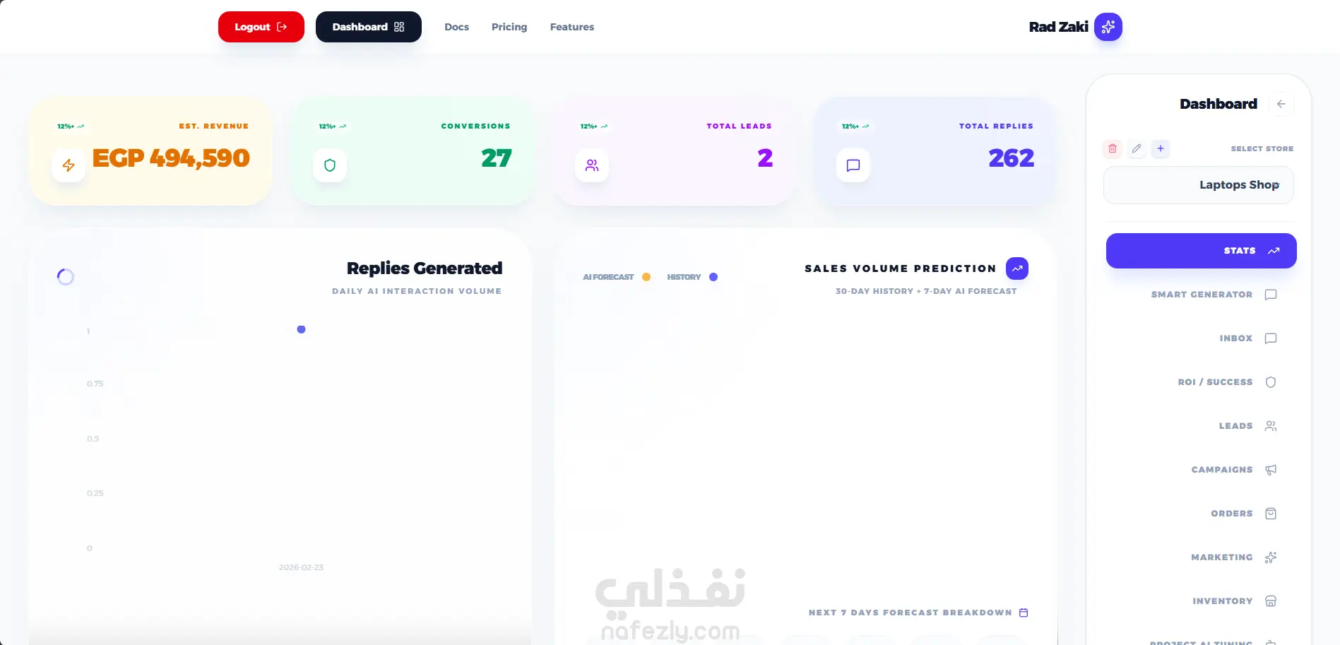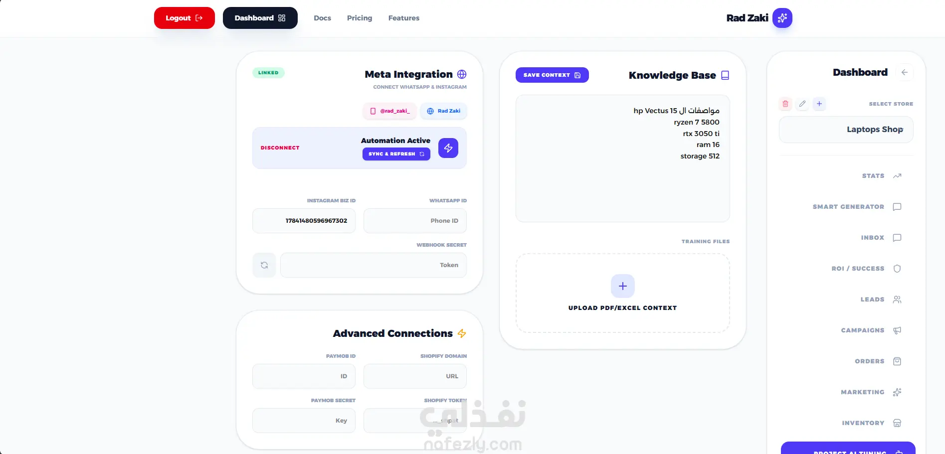 تطوير منصة "رد زكي" (SaaS) - وكيل مبيعات ذكي بالذكاء الاصطناعي