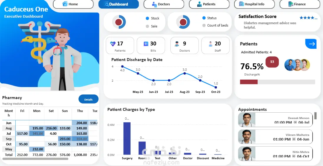 تصميم صفحتي تحتوي على 8 رسومات بيانية و 4 مؤشرات أداء (KPIs).