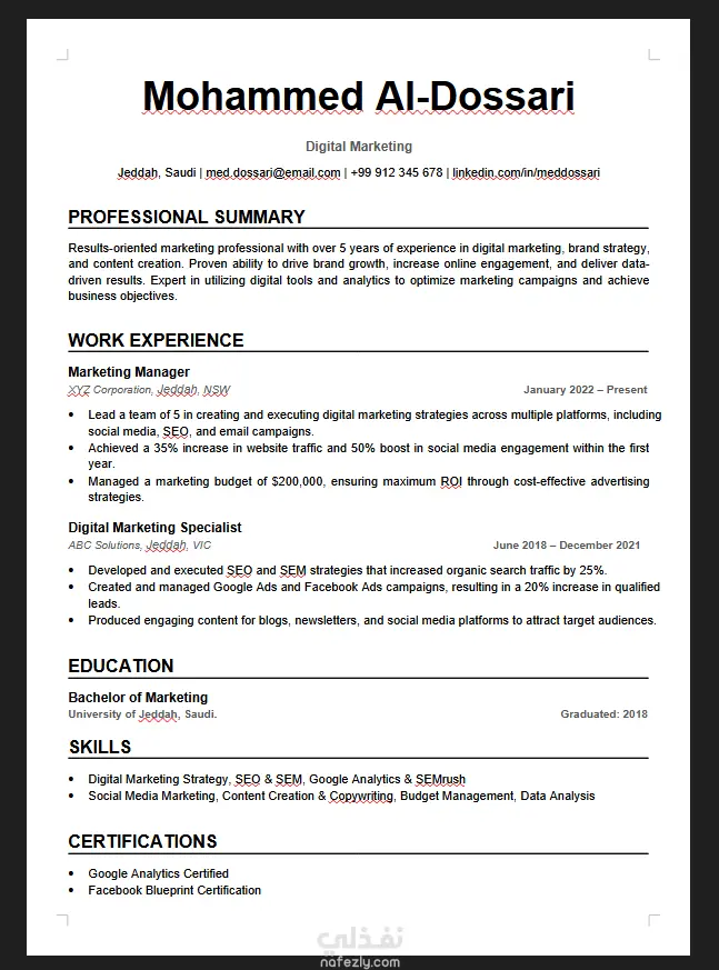 إنشاء سيرة ذاتية احترافية (CV Creation)