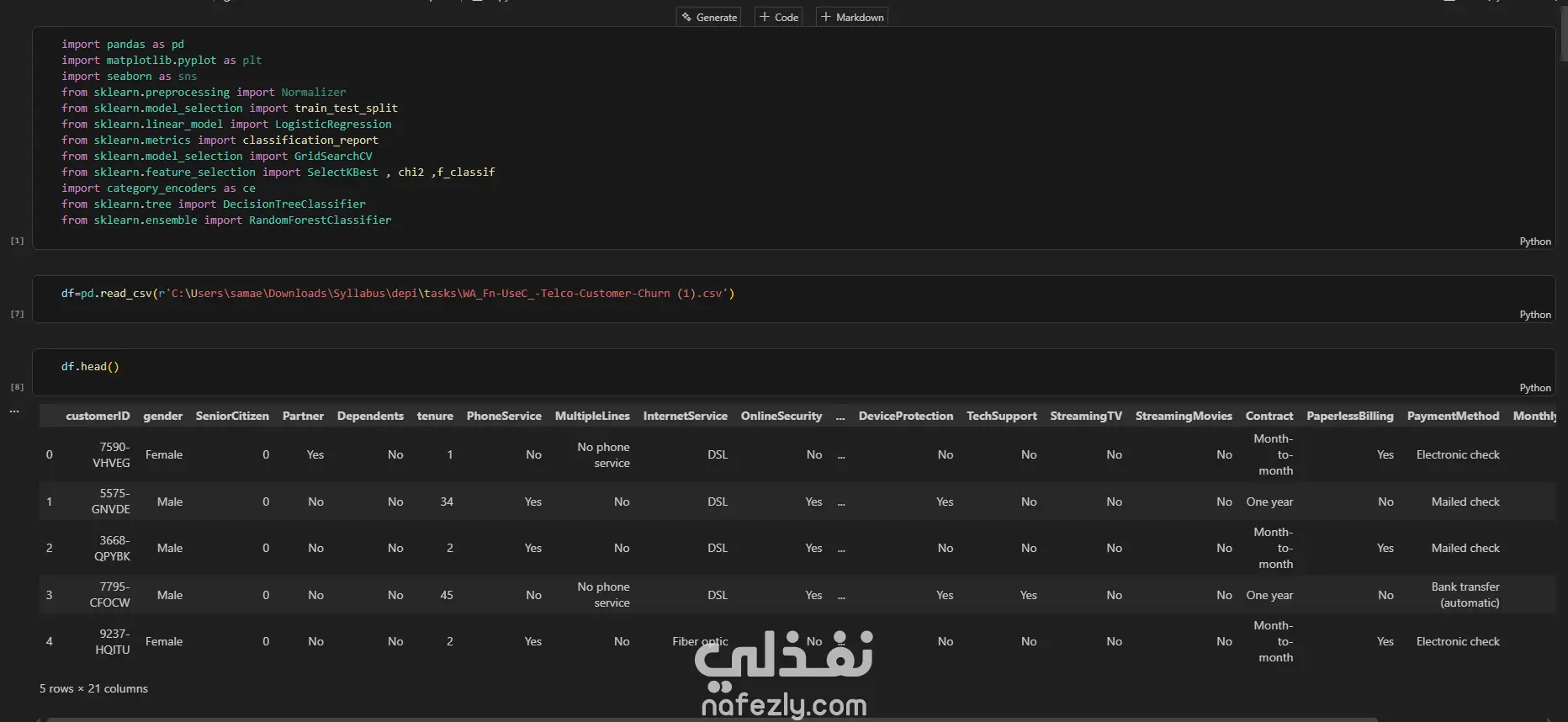 Built an end-to-end machine learning pipeline to predict customer churn for a telecommunications company using a real-world dataset (IBM Telco Customer Churn). • Data Cleaning & Preprocessing — handled missing values, dropped irrelevant features, and encoded binary columns • Feature Engineering — applied Target Encoding for high-cardinality categorical variables • Feature Selection — used Chi-Square test for categorical features and ANOVA F-test for numerical features to select the most predictive variables • Model Development — trained and compared 3 classification models: Logistic Regression, Decision Tree, and Random Forest • Hyperparameter Tuning — optimized each model using GridSearchCV with 5-Fold Cross Validation • Model Evaluation — assessed performance using Precision, Recall, F1-Score, and Classification Report