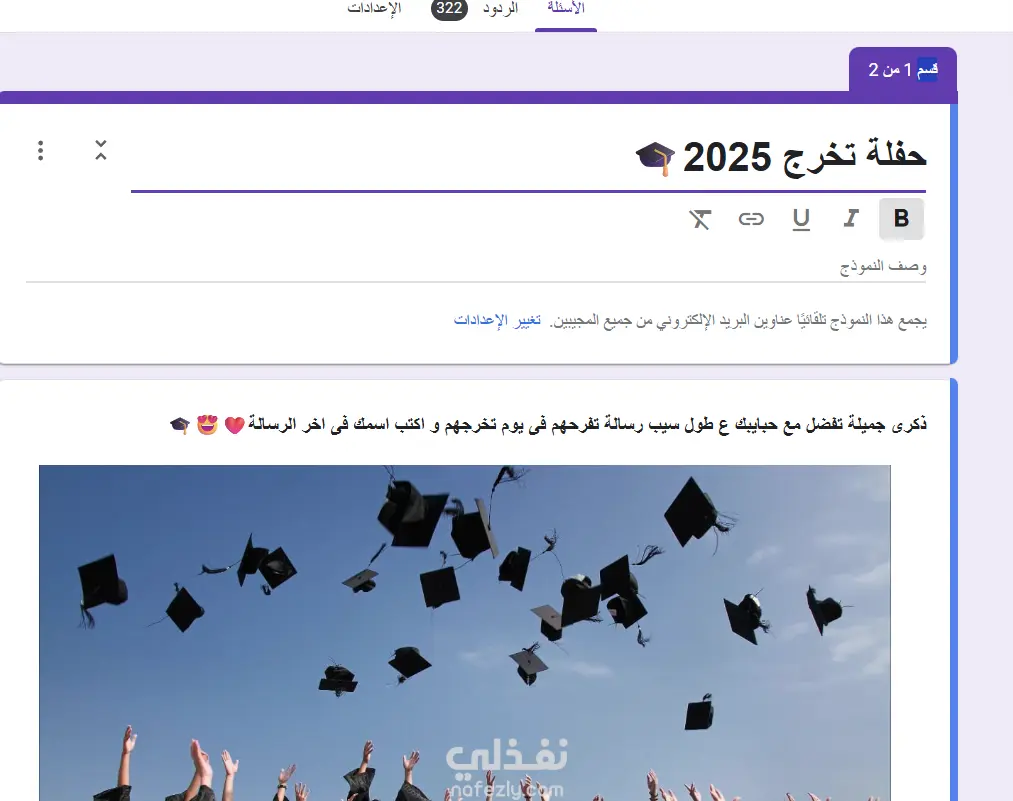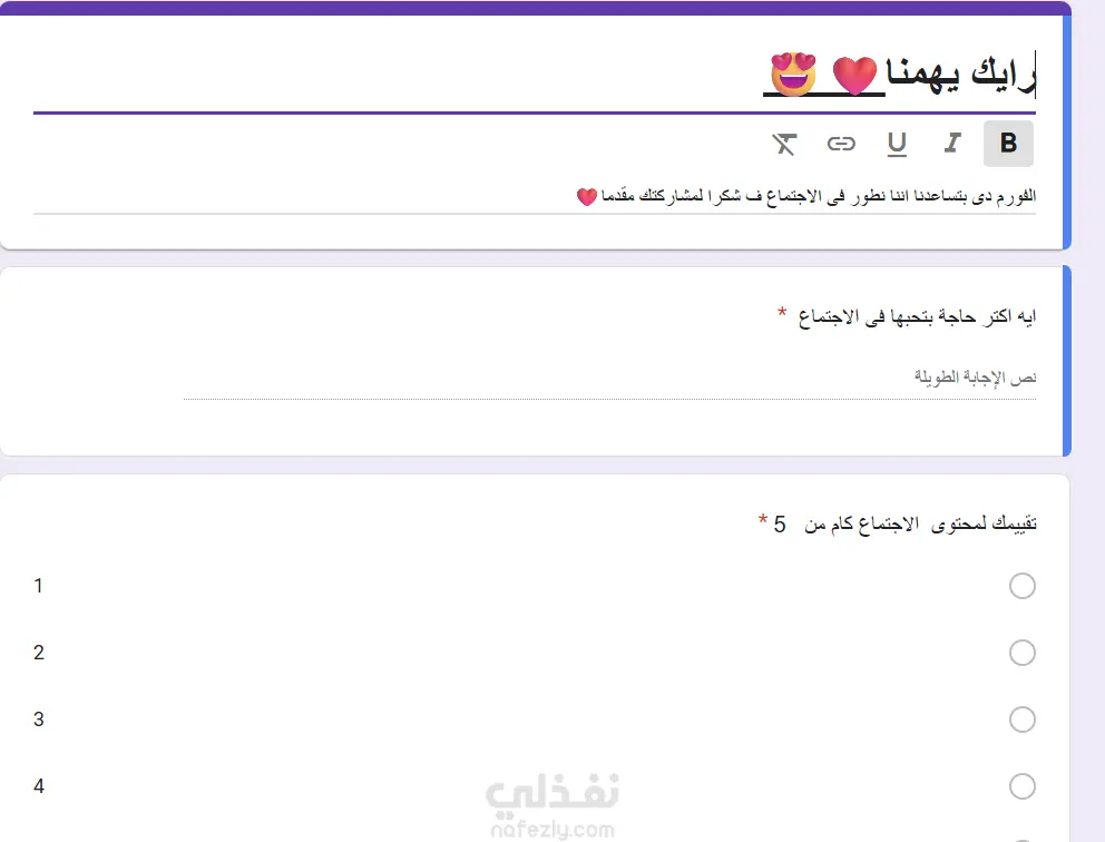 هل تحتاج إلى وسيلة احترافية لجمع بيانات عملائك أو إجراء دراسة سوق دقيقة؟ سأقوم بتصميم نماذج جوجل (Google Forms) مخصصة، منظمة، وسهلة الاستخدام تضمن لك الحصول على أعلى معدل استجابة وببيانات مرتبة. ✨ ما الذي سأقدمه لك في هذه الخدمة؟ تصميم مخصص: إضافة شعار شركتك واختيار ألوان متناسقة مع هويتك البصرية. تعدد الأنواع: (استبيانات، نماذج تسجيل، طلبات توظيف، اختبارات قصيرة، نماذج طلب منتجات). تنظيم النتائج: ربط النموذج بملف Google Sheets لتلقي الإجابات بشكل تلقائي ومنظم. رسالة شكر: تخصيص رسالة تظهر للمستخدم بعد إرسال النموذج. الحماية: ضبط الإعدادات لمنع التكرار أو لتقييد الوصول لأشخاص محددين فورم بسيطة (حتى 15 سؤال) 5$ يوم واحد فورم متقدمة (أسئلة منطقية + ربط تلقائي) 15$ يوم واحد باقة الشركات (عدة نماذج + تحليل نتائج بالتشارتس) 30$+ يومان