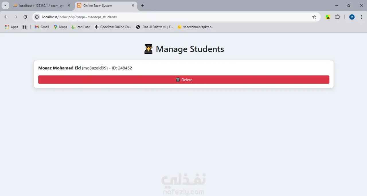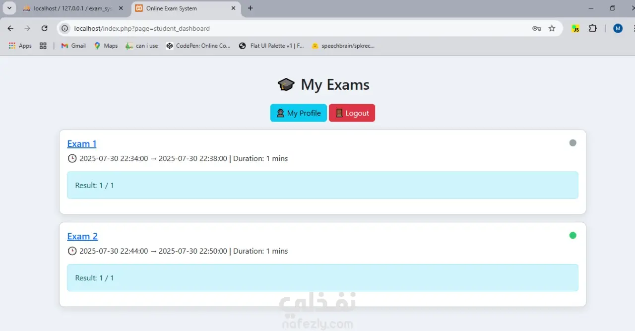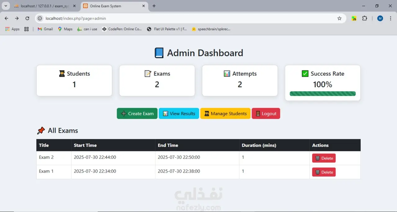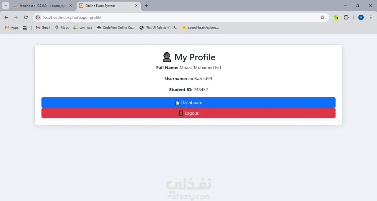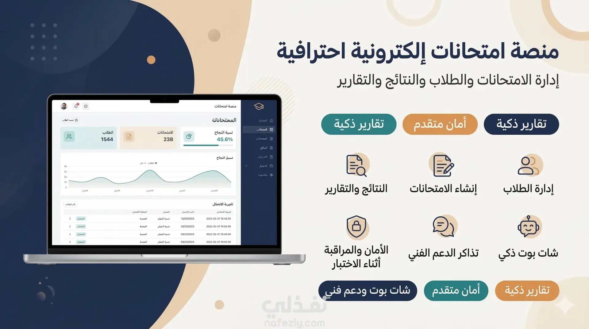 منصة امتحانات إلكترونية متكاملة لإدارة العملية التعليمية والاختبارات أونلاين، مع لوحة تحكم خاصة بالإدارة وواجهة مخصصة للطلاب، بحيث تتيح إنشاء الامتحانات، إدارة الطلاب، متابعة النتائج، والتحكم الكامل في صلاحيات الوصول لكل اختبار. تدعم المنصة إنشاء اختبارات بمدة زمنية محددة ودرجات نجاح مخصصة، مع إمكانية إتاحة الامتحان لجميع الطلاب أو تخصيصه لطلاب محددين فقط. كما توفر للطالب لوحة تعرض الامتحانات المتاحة وحالة كل اختبار والنتائج النهائية ونسبة النجاح بشكل واضح ومنظم. تم تضمين مجموعة من الخصائص المتقدمة لرفع مستوى الأمان والاحترافية، مثل تسجيل الأنشطة المخالفة أثناء الامتحان في سجلات الأمان، دعم المصادقة الثنائية 2FA للحسابات، ونظام تقارير شامل يتيح استخراج تقارير أداء الطلاب، وإحصائيات الامتحانات، وتقارير الانتهاكات. المنصة تحتوي أيضًا على نظام دعم فني داخلي متكامل يشمل تذاكر الدعم وصندوق وارد للرسائل والإشعارات، بالإضافة إلى شات بوت ذكي ثنائي اللغة عربي/إنجليزي للمساعدة والإجابة على الاستفسارات، مع إمكانية إدارة قاعدة المعرفة الخاصة به من لوحة الإدارة. تم تطوير المشروع باستخدام PHP وMySQL مع واجهة منظمة وسهلة الاستخدام، ليكون مناسبًا للمدارس، المعاهد، الأكاديميات، ومشاريع التعليم الإلكتروني التي تحتاج إلى نظام اختبارات وإدارة طلاب بشكل احترافي.