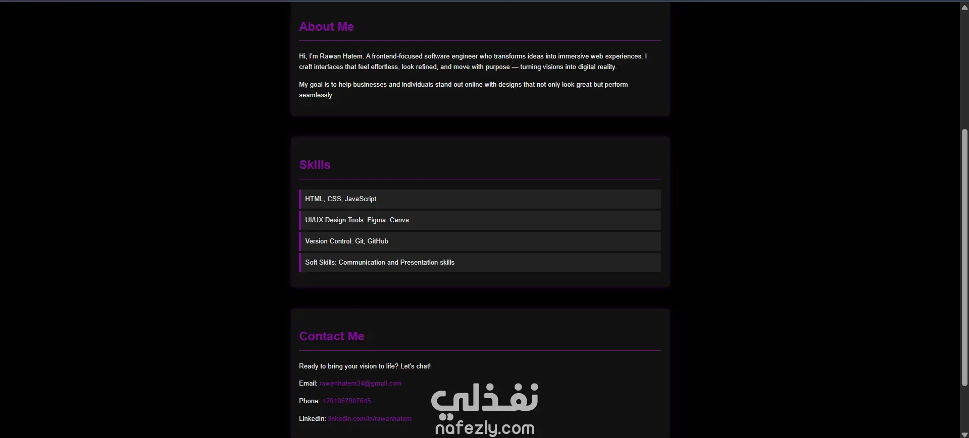 - قسم الى About وهذا القسم هو التعريف عن العميل صاحب الموقع الشخصي.