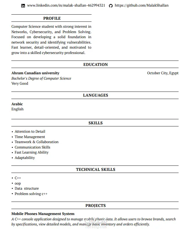 سيرة ذاتية متوافقة مع نظام تتبع المتقدمين (ATS CV) هي وثيقة مصممة خصيصًا ليتم قراءتها وفهمها بواسطة برمجيات مسح وفرز الطلبات (Applicant Tracking Systems). تهدف هذه السير إلى إبراز الكلمات المفتاحية والمهارات لتجاوز الفحص الآلي، وتتميز بتنسيق نصي بسيط (وورد غالباً)، وتجنب الرسوم البيانية والصور لضمان وصولها لمدير التوظيف