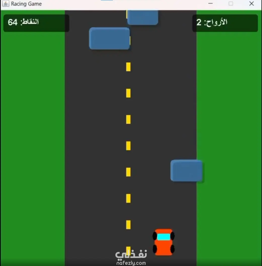 Advanced Java Racing Game – OOP Project مشروع لعبة سباق سيارات تم تطويره باستخدام Java (Swing & AWT) مع تطبيق مفاهيم البرمجة الكائنية (OOP) بشكل عملي. - أهم الجوانب التقنية: --تصميم معماري قائم على مبادئ OOP --استخدام Java 2D API في الرسوميات --تنفيذ نظام Collision Detection --تطوير Game Loop باستخدام Swing Timer --إدارة حالات اللعبة (Start – Playing – Game Over – Restart) --تتبع النقاط ونظام Lives - ما يميز المشروع: --حركة سلسة واستجابة فورية للوحة المفاتيح --توليد عوائق ديناميكي --نظام صعوبة تدريجي --تحسين الأداء باستخدام Double Buffering