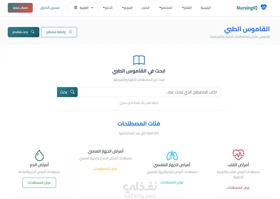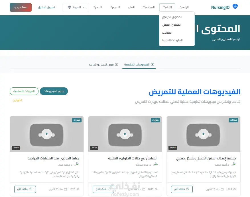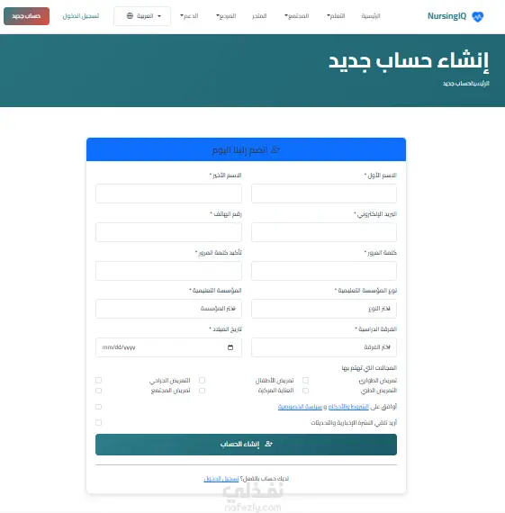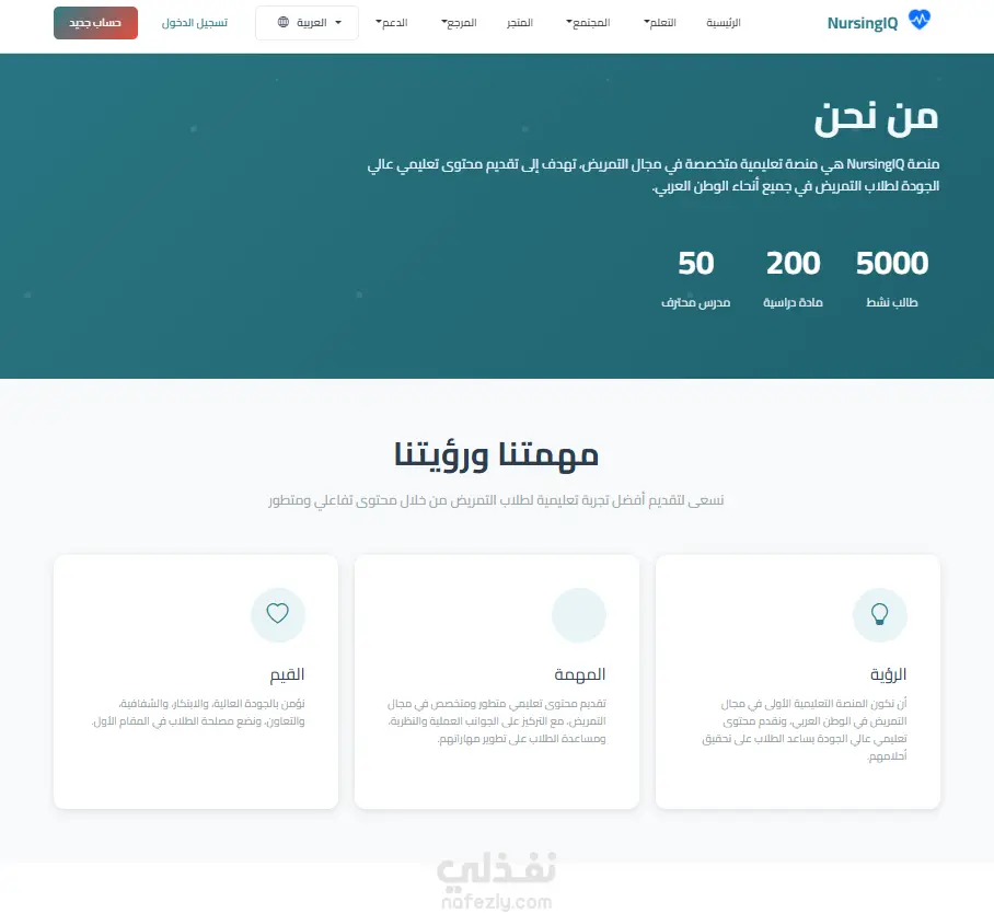 تصميم وتنفيذ منصة تعليمية وداعمة لطلاب التمريض (NursingIQ)