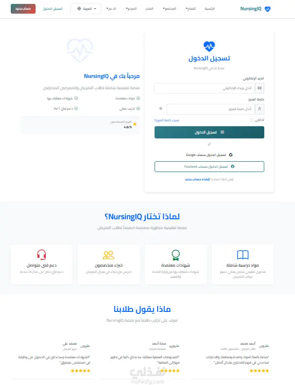 تصميم وتنفيذ منصة تعليمية وداعمة لطلاب التمريض (NursingIQ)