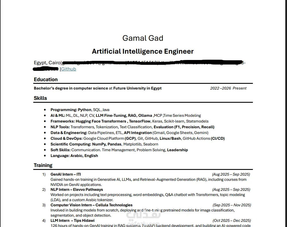في هذا العمل قمت بتصميم وتنسيق سيرة ذاتية (CV) بشكل احترافي ومتوافق مع أنظمة التوظيف (ATS) لضمان إمكانية قراءتها بسهولة من قبل أنظمة الفرز الآلي وزيادة فرص القبول في الوظائف. تم تنظيم أقسام السيرة الذاتية بشكل واضح يشمل المعلومات الشخصية، المهارات، الخبرات العملية، والتعليم، مع استخدام تنسيق بسيط واحترافي يساعد مسؤولي التوظيف على قراءة البيانات بسرعة. ما تم تنفيذه: تصميم CV احترافي تنسيق ATS Friendly تنظيم الأقسام بشكل واضح تحسين عرض المهارات والخبرات اختيار خطوط مناسبة وسهلة القراءة تصميم بسيط ومتوافق مع أنظمة التوظيف الأدوات المستخدمة: Microsoft Word الهدف من العمل: إنشاء سيرة ذاتية احترافية تساعد في زيادة فرص الحصول على مقابلات عمل.