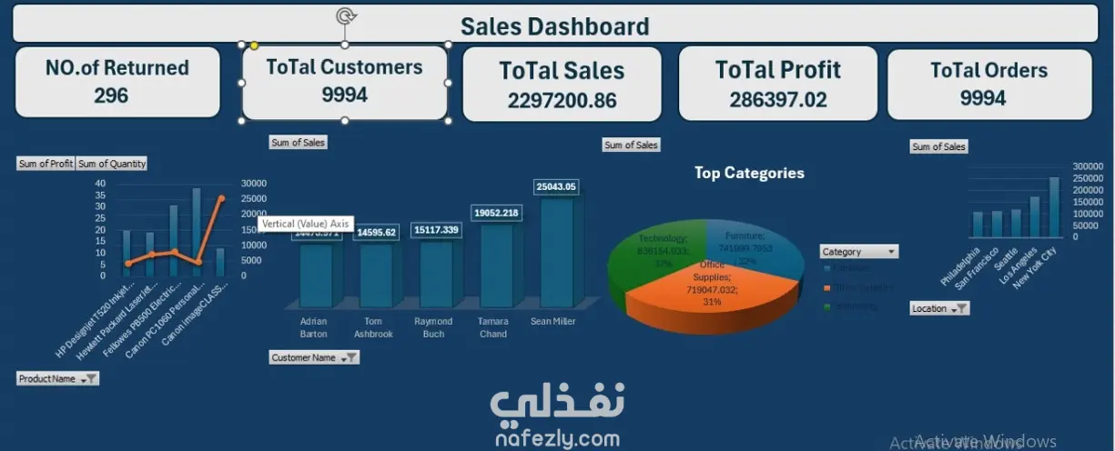 قمت بتنفيذ مشروع تحليل بيانات متكامل باستخدام Excel بدءًا من تنظيف البيانات وتنظيمها وصولًا إلى تحليلها وعرض النتائج في شكل تقارير ولوحات بيانات واضحة تساعد على فهم الأداء واتخاذ القرار. بدأت بمعالجة وتنظيف البيانات (Data Cleaning) من خلال حذف القيم المكررة والتأكد من صحة البيانات وتنظيمها بشكل احترافي لتصبح جاهزة للتحليل. بعد ذلك قمت بتحليل البيانات واستخراج مؤشرات مهمة مثل إجمالي المبيعات، الأرباح، عدد الطلبات، وعدد المرتجعات، بالإضافة إلى تحليل الأداء حسب الفئات والمدن والعملاء. تم إنشاء Pivot Tables وتقارير تحليلية لاستخراج أهم النتائج، ثم عرض البيانات في شكل Visualizations ولوحات بيانات داخل Excel لتسهيل قراءة الأرقام ومقارنة الأداء واستخراج insights واضحة تدعم اتخاذ القرار. الأدوات المستخدمة: Microsoft Excel Pivot Tables Data Cleaning Data Analysis Data Visualization المهارات المستخدمة: تنظيف وتنظيم البيانات تحليل المبيعات والأرباح إنشاء تقارير ولوحات بيانات عرض النتائج بشكل احترافي استخراج مؤشرات الأداء (KPIs) أحرص دائمًا على تقديم تحليل دقيق ومنظم يساعد على تحويل البيانات إلى معلومات واضحة تدعم اتخاذ قرارات صحيحة وتطوير الأداء.