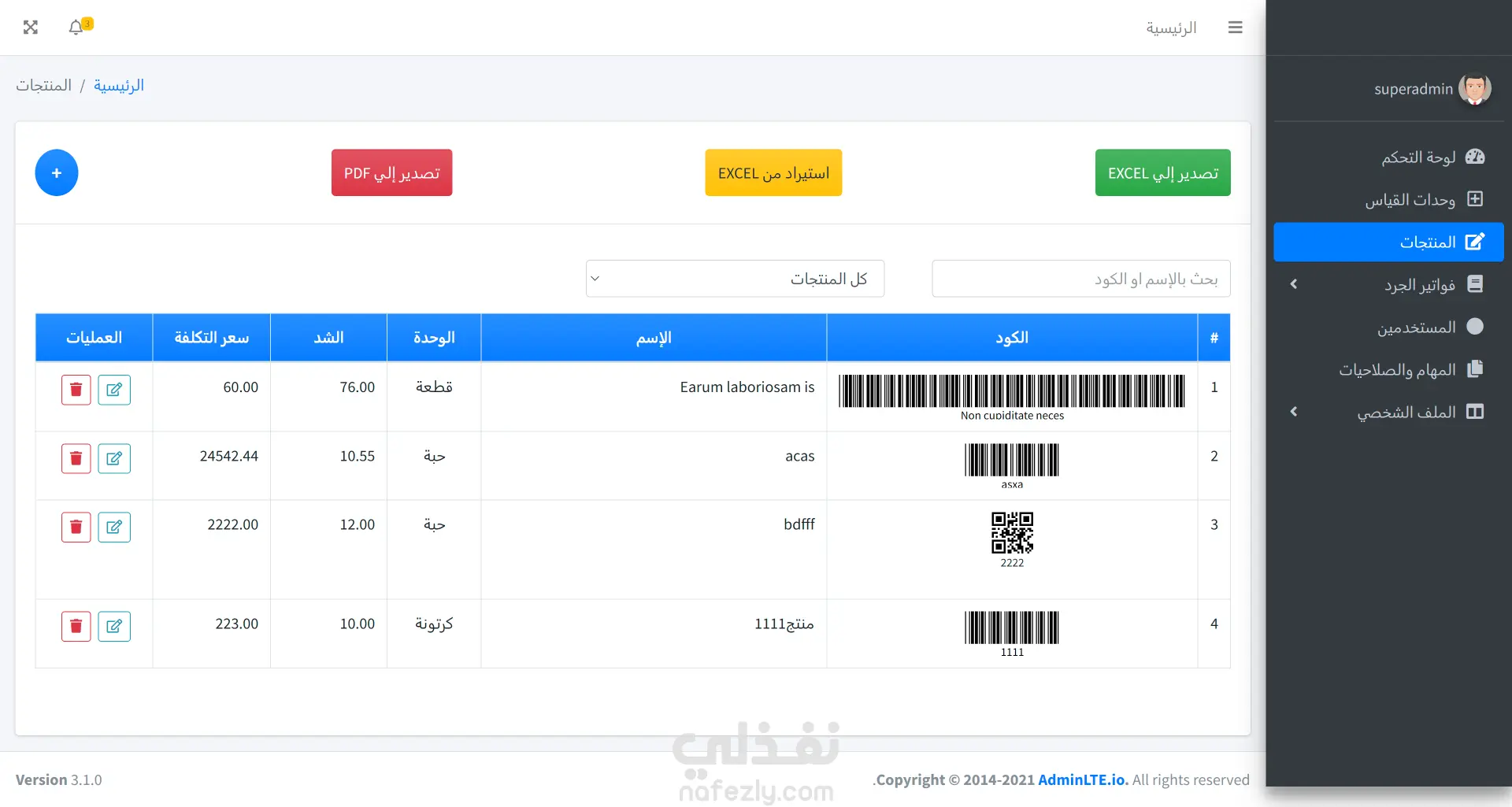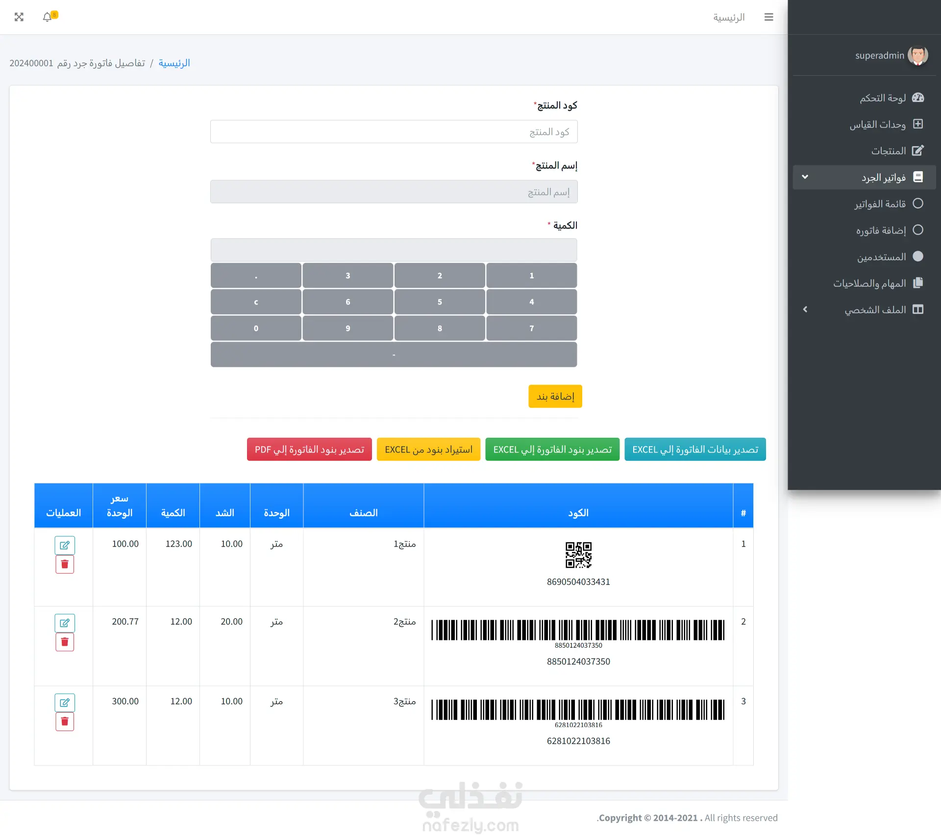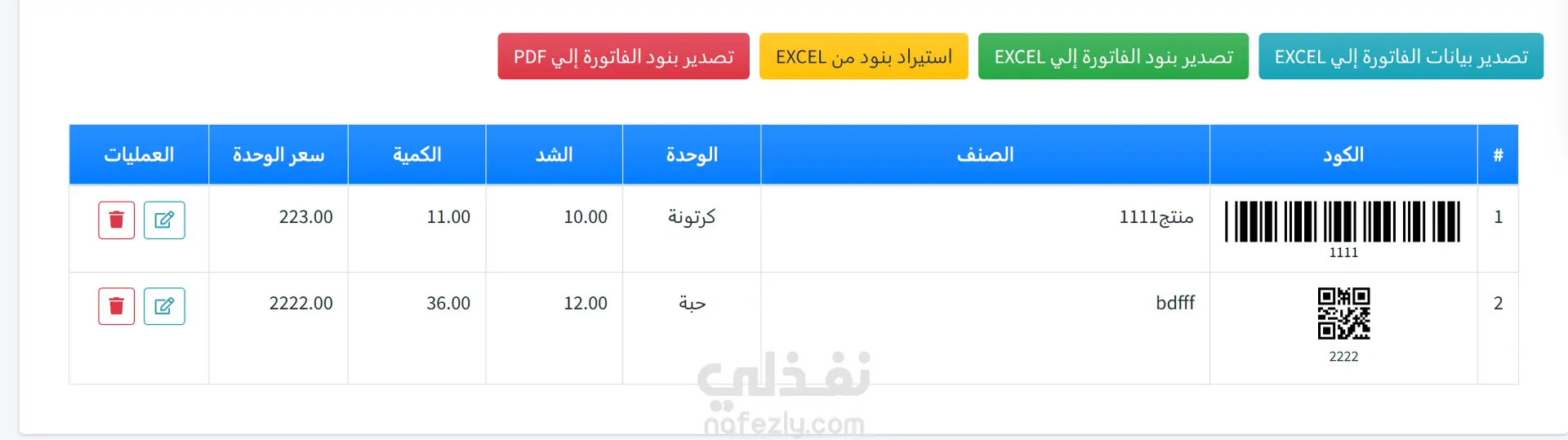 إمكانية إنشاء باركود أو رمز QR لكل منتج (أحادي البعد 1D وثنائي البعد 2D).
