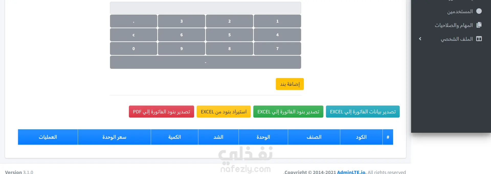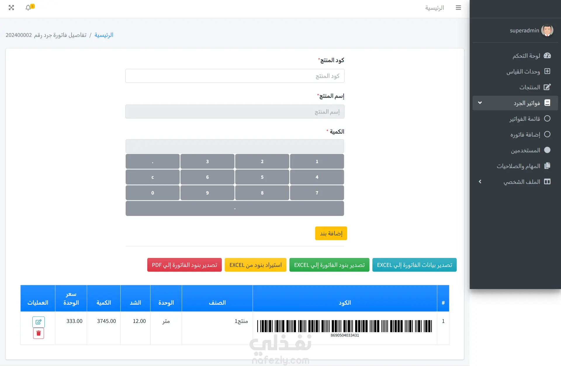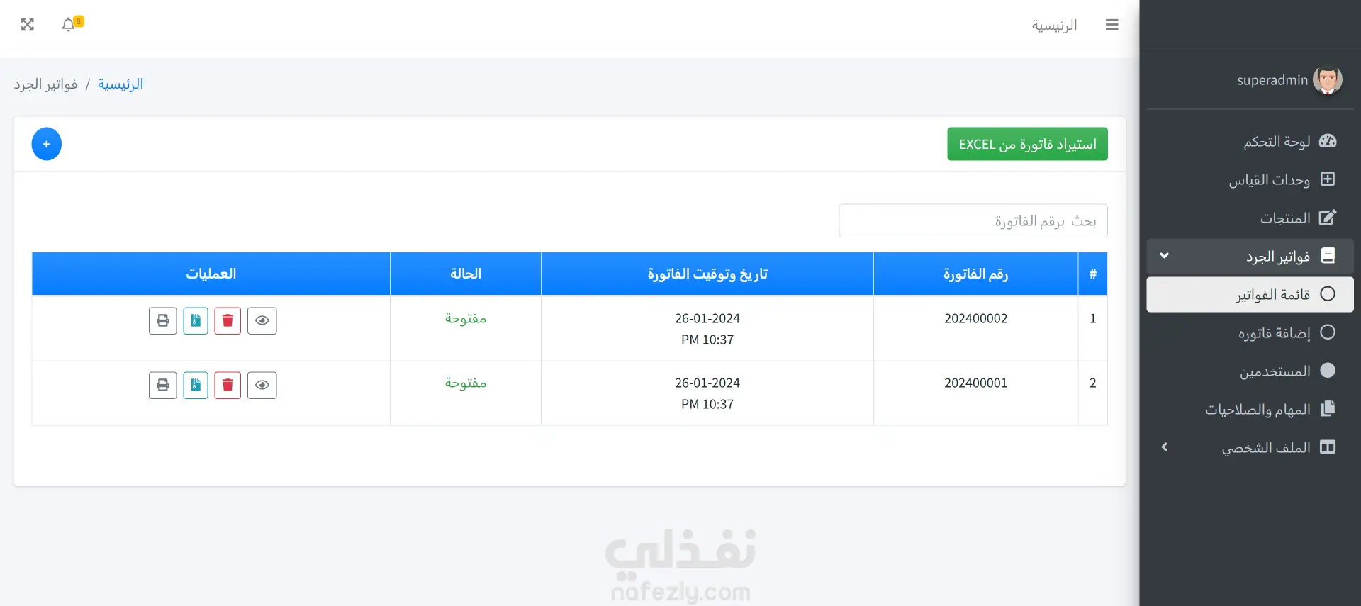 إمكانية استيراد عناصر الفاتورة من Excel، وتصدير الفواتير إلى Excel وPDF.