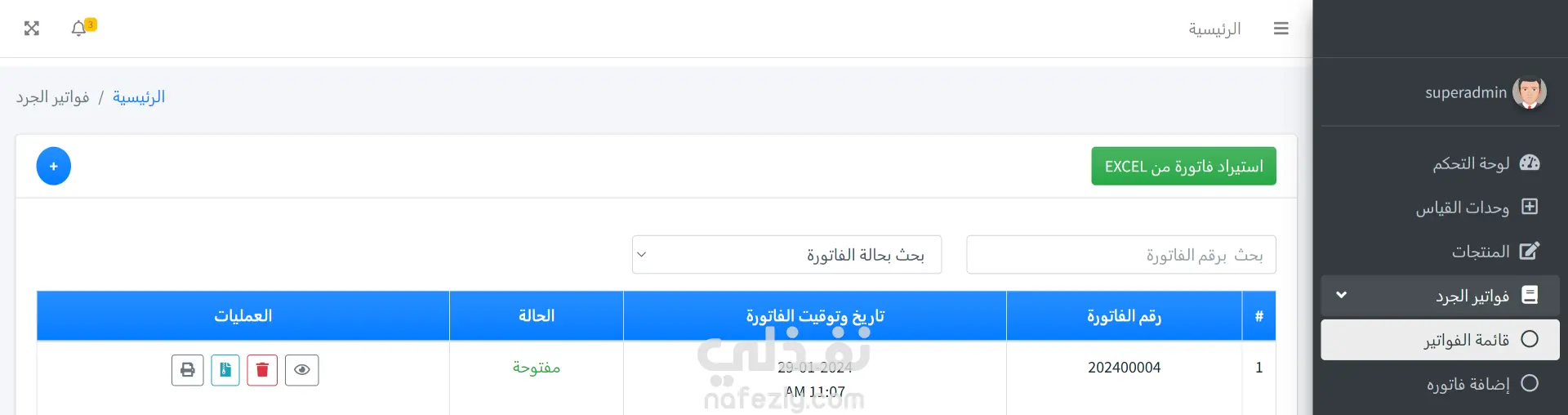 إمكانية أرشفة الفواتير وطباعة الفواتير.