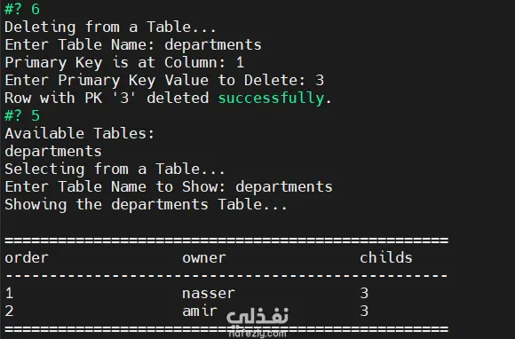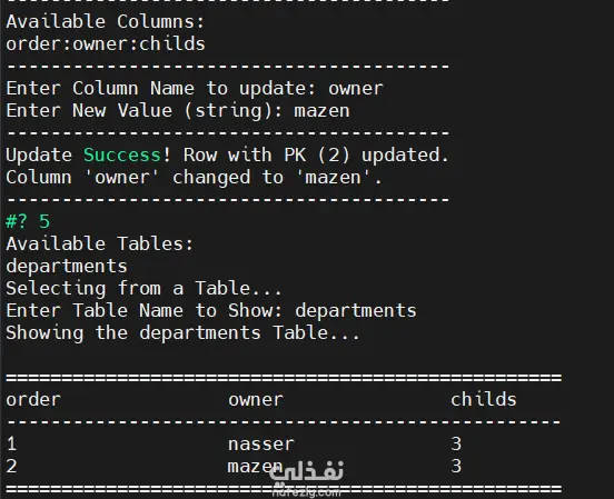 عنوان المشروع: نظام إدارة قواعد بيانات (DBMS) بـ Bash Scripting يعمل داخل بيئة Docker وصف المشروع: قمت بتطوير نظام متكامل لإدارة قواعد البيانات (DBMS) يحاكي SQL باستخدام Bash Scripting، وقمت بعمل Dockerization كامل للمشروع لضمان عمله على أي بيئة تشغيل دون مشاكل اعتماديات (Dependencies). المشروع يجمع بين مهارات البرمجة (Scripting) ومهارات البنية التحتية (Infrastructure)، حيث يتيح للمستخدم إنشاء جداول، الاستعلام عن البيانات، وتعديلها من خلال واجهة سطر أوامر تفاعلية تعمل داخل حاوية (Container). المميزات التقنية (Technical Features): Dockerized Environment: كتابة Dockerfile احترافي لبناء صورة (Image) خفيفة وآمنة للمشروع. ضمان عمل التطبيق بـ "Isolated Environment" مما يسهل اختباره وتشغيله على أي سيرفر. إدارة البيانات (Data Manipulation): دعم كامل لعمليات (Create, Drop, Insert, Select, Delete, Update). التحقق الصارم من أنواع البيانات (Data Type Validation) والمفتاح الأساسي (Primary Key). كفاءة الأداء: استخدام أوامر Linux المتقدمة (awk, sed, grep) لمعالجة البيانات بسرعة عالية داخل الحاوية. المهارات والأدوات المستخدمة: DevOps: Docker, Containerization, Image Building. Scripting: Advanced Bash Shell Scripting. OS: Linux (Ubuntu/Alpine). Text Processing: Awk, Sed.