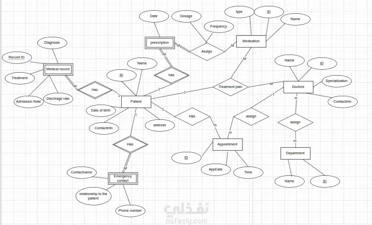 في هذا المشروع قمت بتصميم قاعدة بيانات متكاملة لنظام إدارة مستشفى، بدايةً من تحليل المتطلبات، مرورًا بتصميم ER Diagram، ثم تحويله إلى Database Schema جاهز للتنفيذ. يشمل التصميم إدارة البيانات الأساسية مثل: المرضى الأطباء الأقسام المواعيد السجلات الطبية خطط العلاج الأدوية والوصفات الطبية جهات الاتصال الطارئة تم مراعاة تطبيق مبادئ Database Design وNormalization لضمان: تقليل التكرار سلامة البيانات وضوح العلاقات بين الكيانات سهولة التوسع والتطوير لاحقًا ? مخرجات المشروع: ER Diagram يوضح الكيانات والعلاقات بينها Database Schema يوضح الجداول مع: Primary Keys Foreign Keys العلاقات بين الجداول