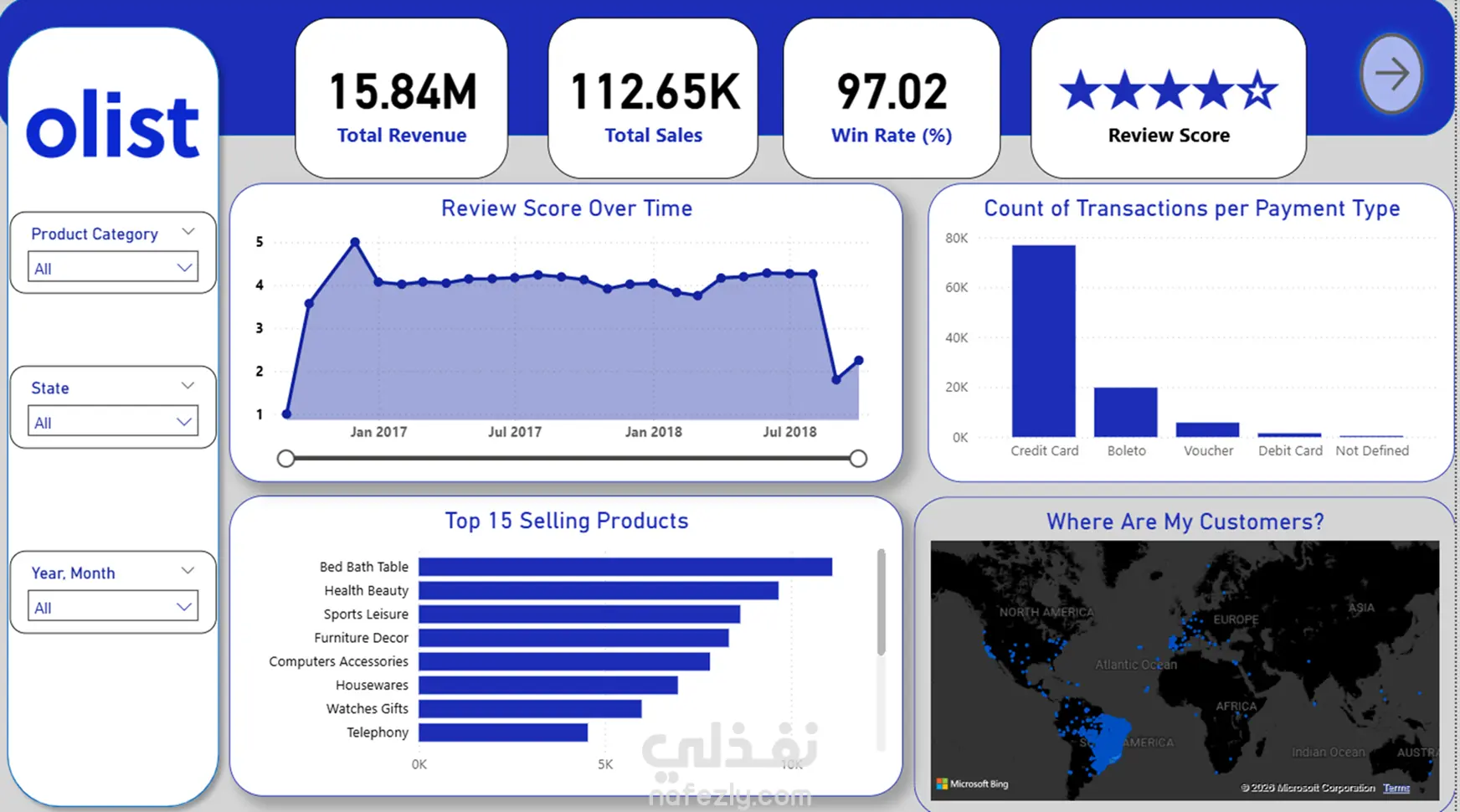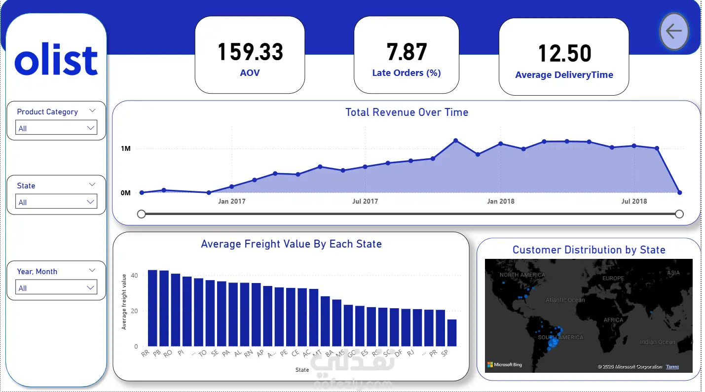 في هذا المشروع قمت بتحليل بيانات مبيعات شركة تجارة إلكترونية (Olist) بهدف فهم أداء المبيعات واكتشاف العوامل التي تؤثر على الإيرادات وسلوك العملاء. بدأت بتنظيف البيانات ومعالجتها للتأكد من دقة البيانات وجودتها، ثم قمت بإجراء تحليل البيانات الاستكشافي (EDA) لاكتشاف الأنماط والعلاقات داخل البيانات. شمل التحليل عدة جوانب مهمة مثل: - تحليل إجمالي المبيعات والإيرادات - تحليل أداء المنتجات الأكثر مبيعًا - تحليل سلوك العملاء وأنماط الشراء - تحليل توزيع المبيعات عبر الزمن - تحليل أداء المتاجر والبائعين كما قمت بإنشاء تصورات بيانية تساعد على فهم البيانات بسهولة واكتشاف الاتجاهات والأنماط المهمة داخل البيانات. يساعد هذا النوع من التحليل الشركات على فهم عملائها بشكل أفضل وتحسين استراتيجيات المبيعات والتسويق.