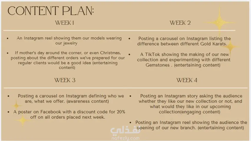 Developed brand voice and storytelling style Created social media content ideas and captions Planned marketing concepts for jewelry campaigns Focused on building a luxury and elegant brand identity